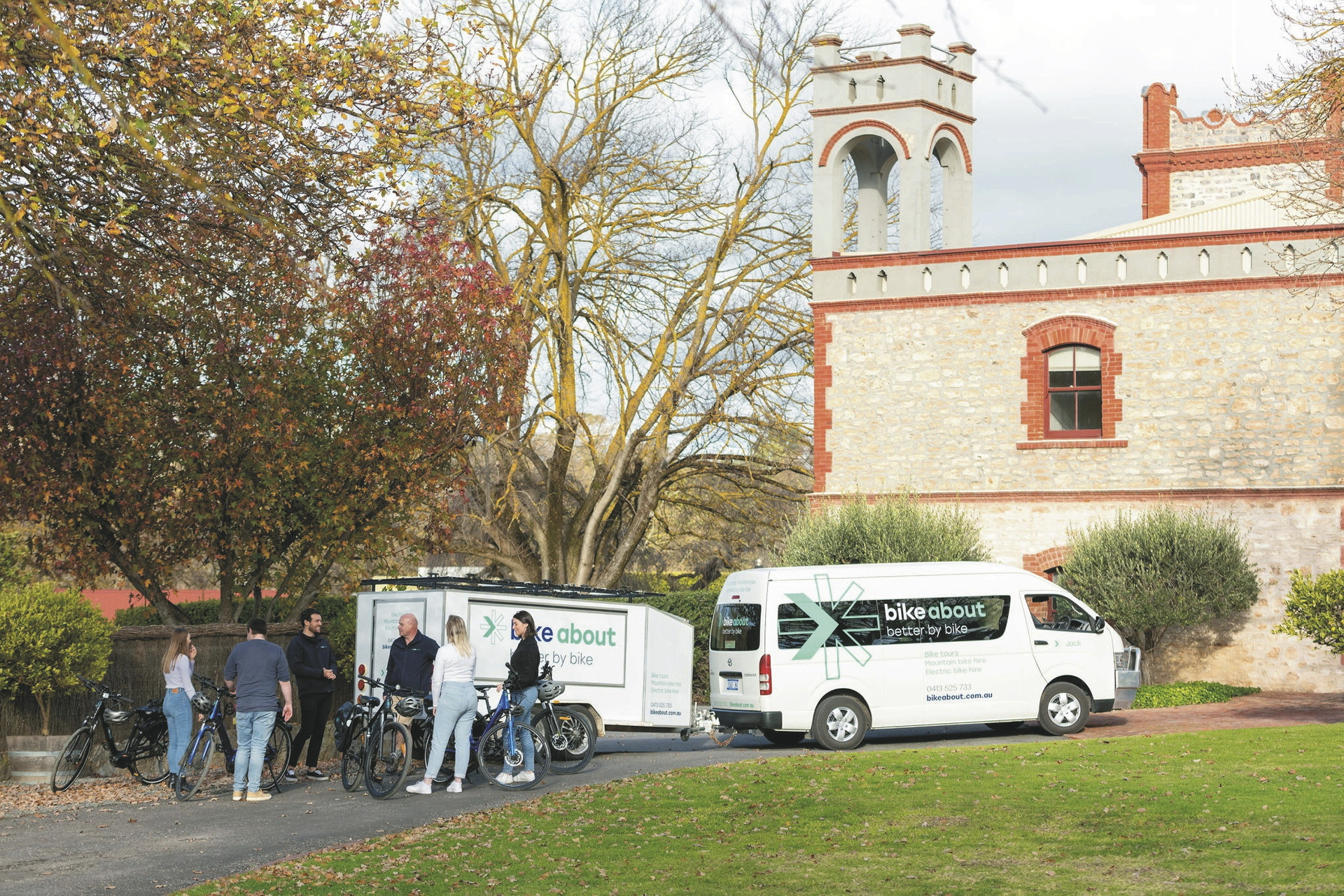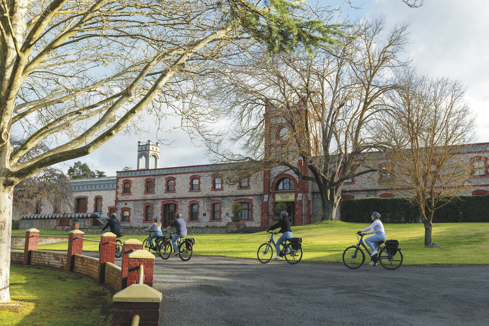- Fahrradtour mit englischsprechender Reiseleitung; E-Bike & Helm, Vormittags-Kaffeepause & Yalumba Mittagessen, Küferei & Barrel Tasting Tour; Käste Tasting, Artisans Wine Tasting.
