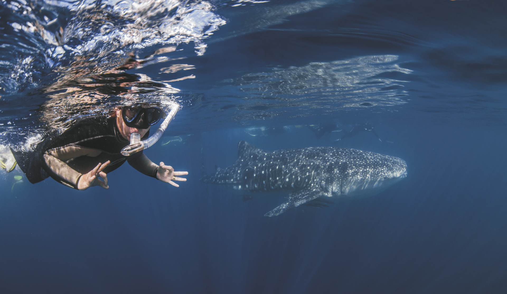 Tauchen Sie ein in die tropisch, farbenfrohe Welt des Ningaloo Marine Park und begegnen Sie dem größten Fisch der Welt – dem Walhai.