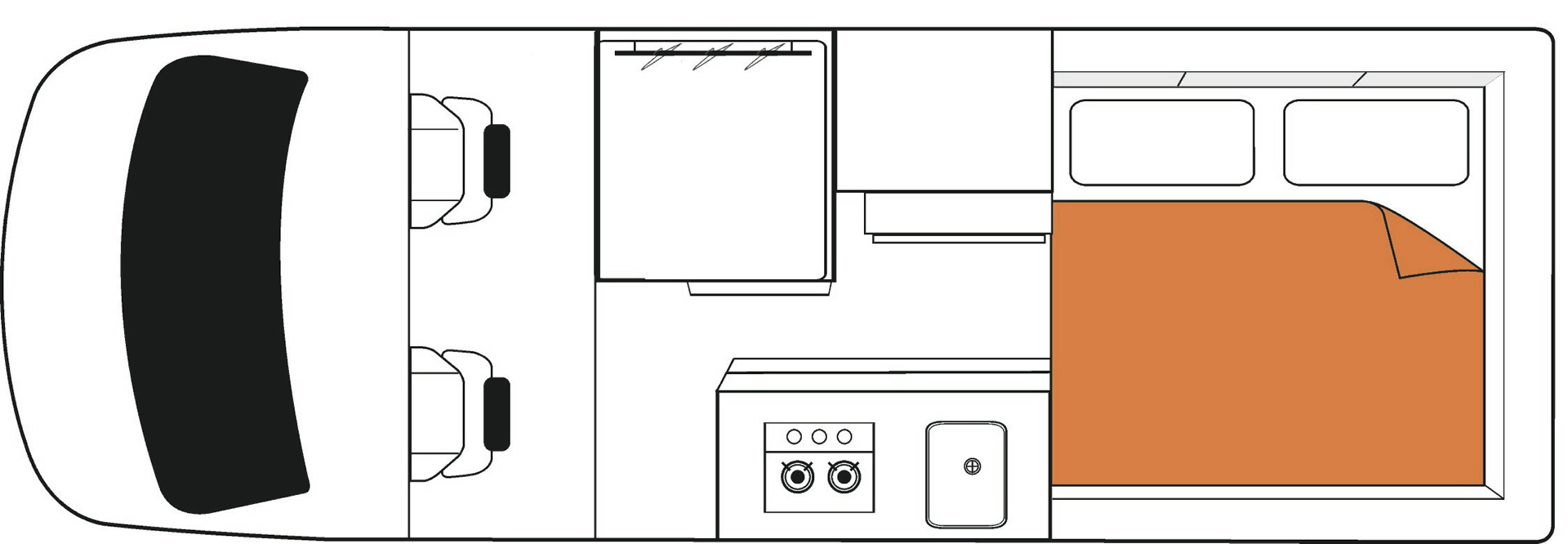 Ein geräumiger aber immer noch wendig und einfach zu fahrender Camper. Einfacher ausgestattet und ohne Dusche/WC - ein preiswerter Camper für 2 Personen.