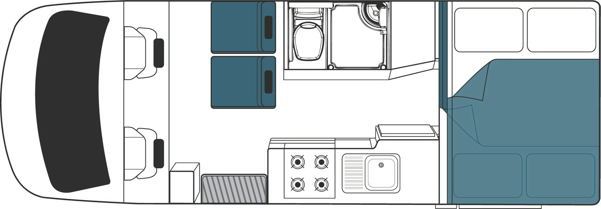• 2 Sitzplätze im Wohnbereich hinter der Fahrerkabine