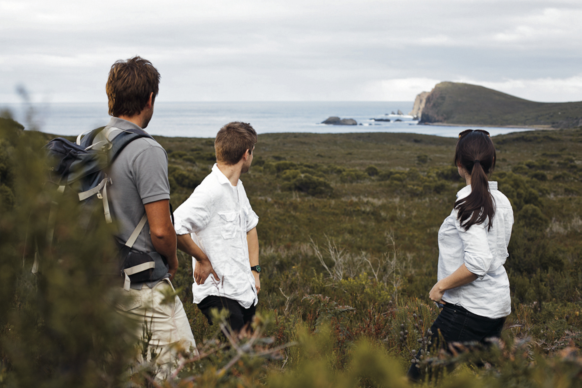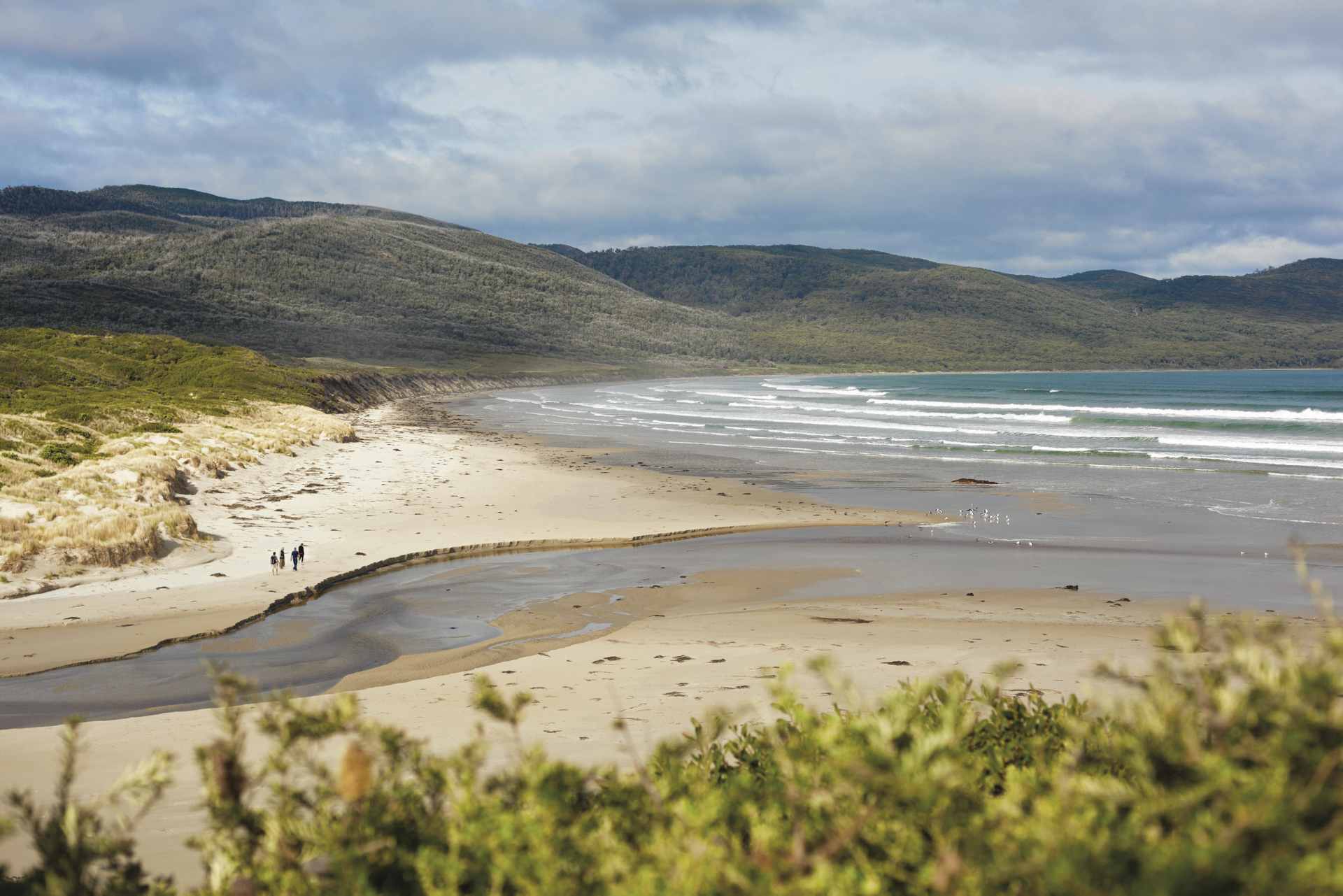 Die Tageswanderung führt Sie zum East Cloudy Head, um die raue Südküste der Insel zu entdecken und endlose Aussichten auf den südlichen Ozean zu genießen. Die fünfstündige Tour beginnt mit einem Spaziergang entlang des Cloudy Bay Beach. Vom Wind gepeitscht und wunderschön führt uns der Weg dann in die Küstenheide und hinauf zur spektakulären Aussicht auf die zerklüftete Südküste. Genießen Sie die Zeit zurück im Camp, nach einer heißen Dusche auf der Camp Terrasse zu sitzen, mit der fantastischen Aussicht, zwischen den Farnen zu spazieren oder einfach zu relaxen, während Ihre Reiseleiter das Abendessen vorbereiten. Nach dem Sonnenuntergang erleben Sie die nachtaktive Tierwelt Bruny Islands und genießen am Lagerfeuer ein Glas tasmanischen Wein.