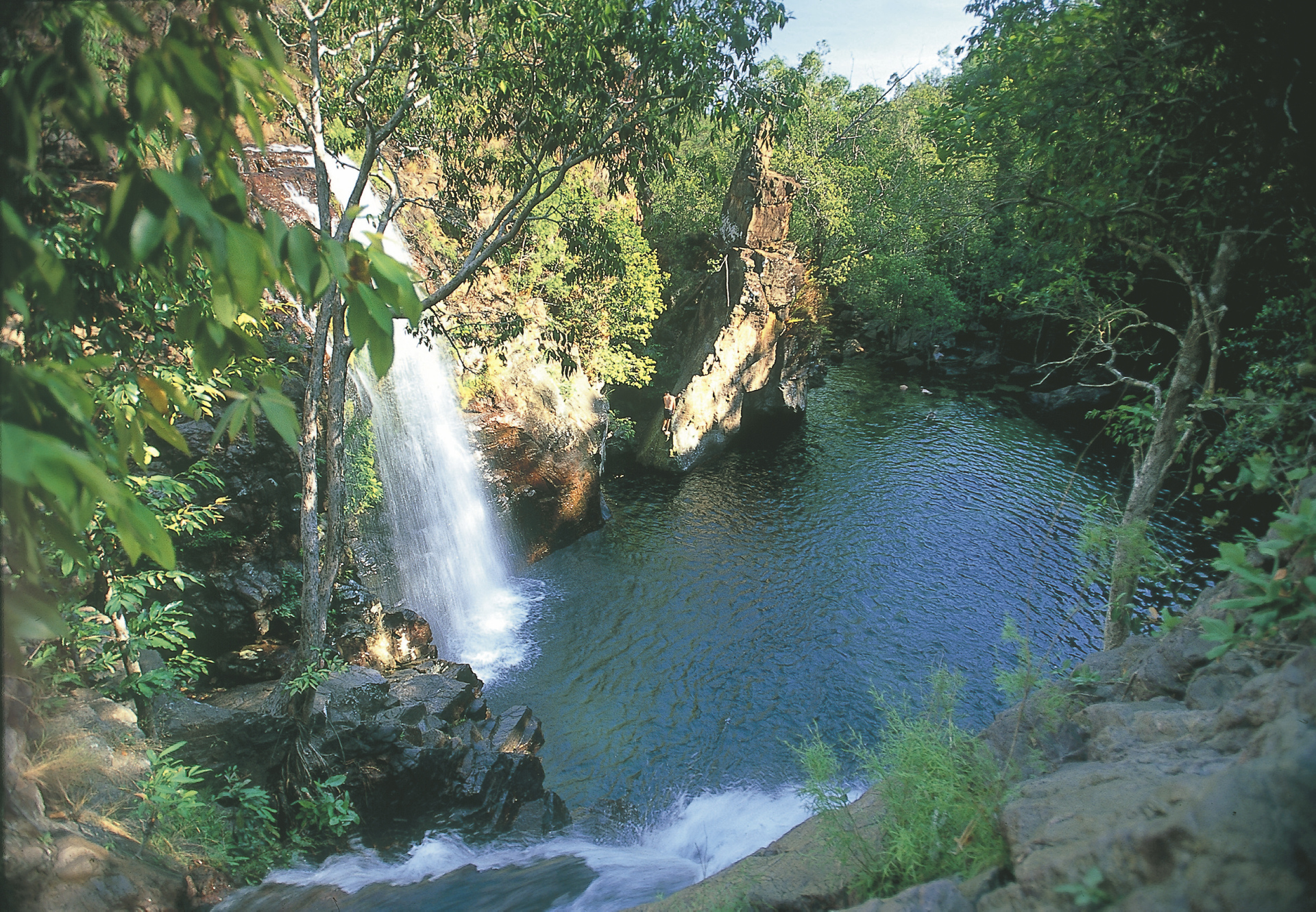 Der Litchfield Nationalpark beeindruckt mit üppigen Wäldern, spektakulären Wasserfällen, schimmernden Felsenpools und hoch aufragenden Termitenhügeln. Besonders beliebt sind die Florence Wasserfälle mit guten Bademöglichkeiten. Ü: Litchfield Outback Resort.