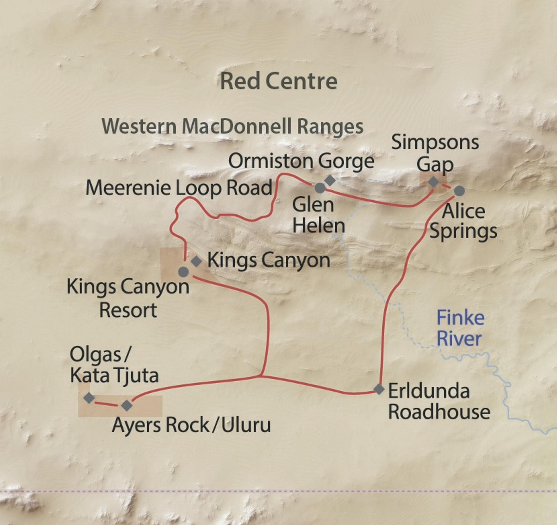 - Höhepunkte MacDonnell Ranges, Mereenie Loop Road, Kings Canyon, Ayers Rock