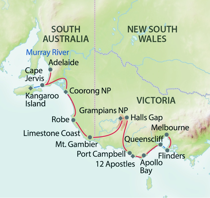 - Höhepunkte u.a. Mornington Peninsula, Great Ocean Road, Grampians und Kangaroo Island