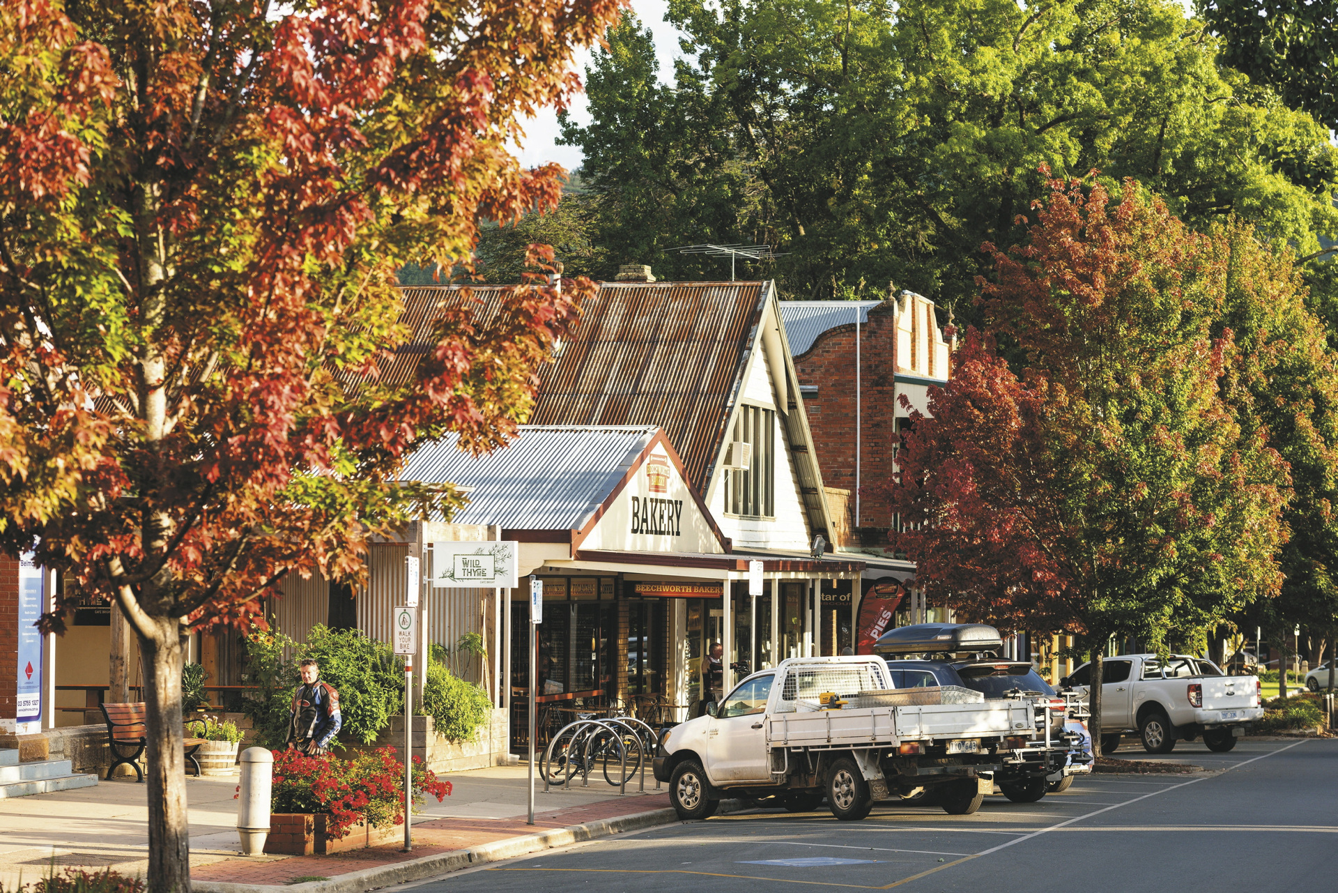 Auf dem Weg nach Wodonga haben Sie wieder die Möglichkeit tolle bemalte Silos zu bestaunen. Wodonga liegt in der Nähe des Lake Hume, einem großen Stausee des Murray River. Besuchen Sie die Bethanga Brücke, den Lake Hume Ort oder den Damm, um die Ausmaße des Sees zu erfassen. Wir empfehlen auch den Besuch der Bonegilla Migrant Experience, heute ein Museum, von 1947 bis 1971 ein Lager für Einwanderer ohne Kontakte in Australien und ein faszinierender Einblick in die Geschichte der Immigration. Einer von 20 Australiern heute hat über Verwandte eine Verbindung zu Bonegilla. Anschließend Weiterfahrt über kleine Orte wie Beechworth und Myrtleford nach Bright, und Sie befinden sich schon in der alpinen Region Victorias, auf der sogenannten Great Alpine Road. Erkunden Sie den Ort zu Fuß oder per Fahrrad. Entdecken Sie die kleinen Läden und die quirligen Cafes. Kehren Sie ein in einer Brauerei oder besuchen Sie den lokalen Markt. Bright liegt in einem wunderschönen Tal und hat einen tollen Charakter. Ü: Unterkunft in Bright.