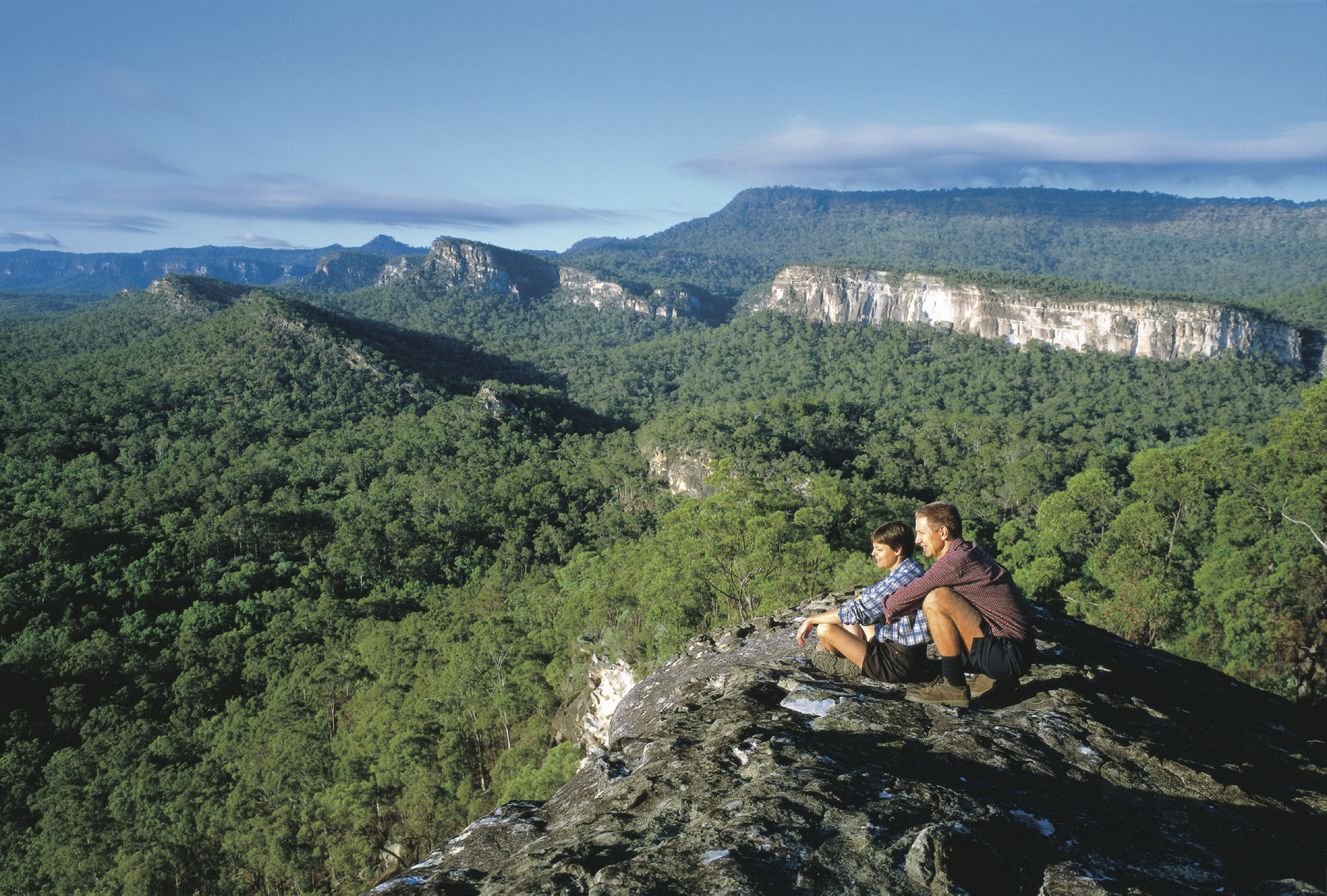 Das Hinterland Queenslands wird geprägt durch die McPherson Gebirgskette. Sie ist Teil des World Heritage Parks "Brisbane Scenic Rim". Hier finden Sie abgeschiedene Farmen, ursprünglichen Regenwald, Buschgebiete und idyllische Wasserfälle. Tagesziel ist das farbenfrohe Städtchen Chinchilla, auch bekannt als Melonen-Hauptstadt. Einen Besuch wert ist das Chinchilla Historical Museum. Die Sammlung umfasst u.a. das allererste Flugticket, das Qantas für den Erstflug von Longreach nach Cloncurry ausstellte. Ü: The Laurels of Chinchilla.