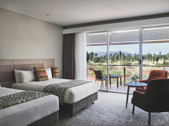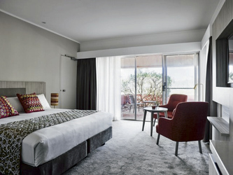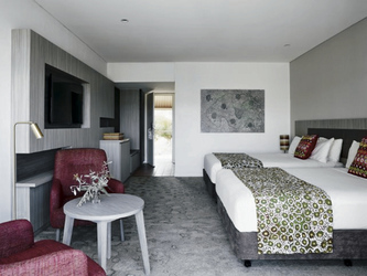 134 Standardzimmer mit Dusche/WC und 84 Deluxe-Zimmer mit Bad oder Dusche/WC - wahlweise mit Blick auf den Ayers Rock. Alle Zimmer sind klimatisiert, haben Terrasse oder Balkon und sind mit Telefon, TV, Radio, Minibar, Tee-/Kaffeezubereiter, Bügeleisen/-brett eingerichtet. Deluxe-Zimmer bieten zusätzlich Zimmersafe sowie Bademäntel.