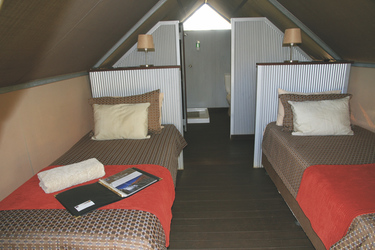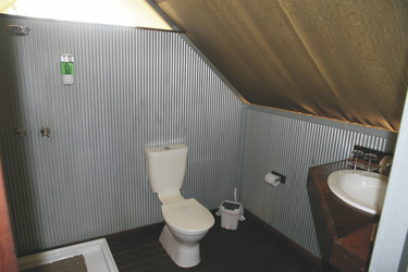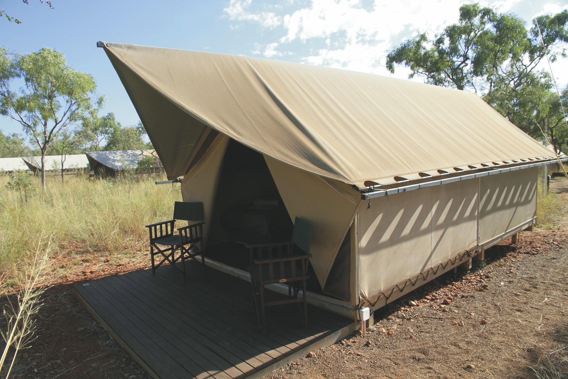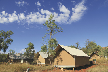 Es gibt 30 komfortable, geräumige Zeltbungalows. Alle mit festen Holzfußböden, eigenem Bad mit Dusche/WC, bequemen Betten (wahlweise ein Doppel- oder zwei Einzelbetten), Nachttisch, Ventilator, elektrischem Licht und Gepäckablage. Das Highlight der Bungalows sind die privaten Decks, die einen weiten Blick auf das Wunaamin Miliwundi Escarpment und die Umgebung bieten.
