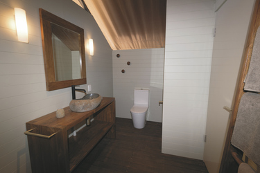 Die harmonisch in die Naturlandschaft integrierte Anlage verwöhnt die Gäste mit guter Küche. Die Gästelounge ist offen aber überdacht und am Abend trifft man sich gerne an der Bar oder am Lagerfeuerplatz. Aufgrund der Abgeschiedenheit gibt es keinen Internetzugang und keinen garantierten Mobilfunkempfang.