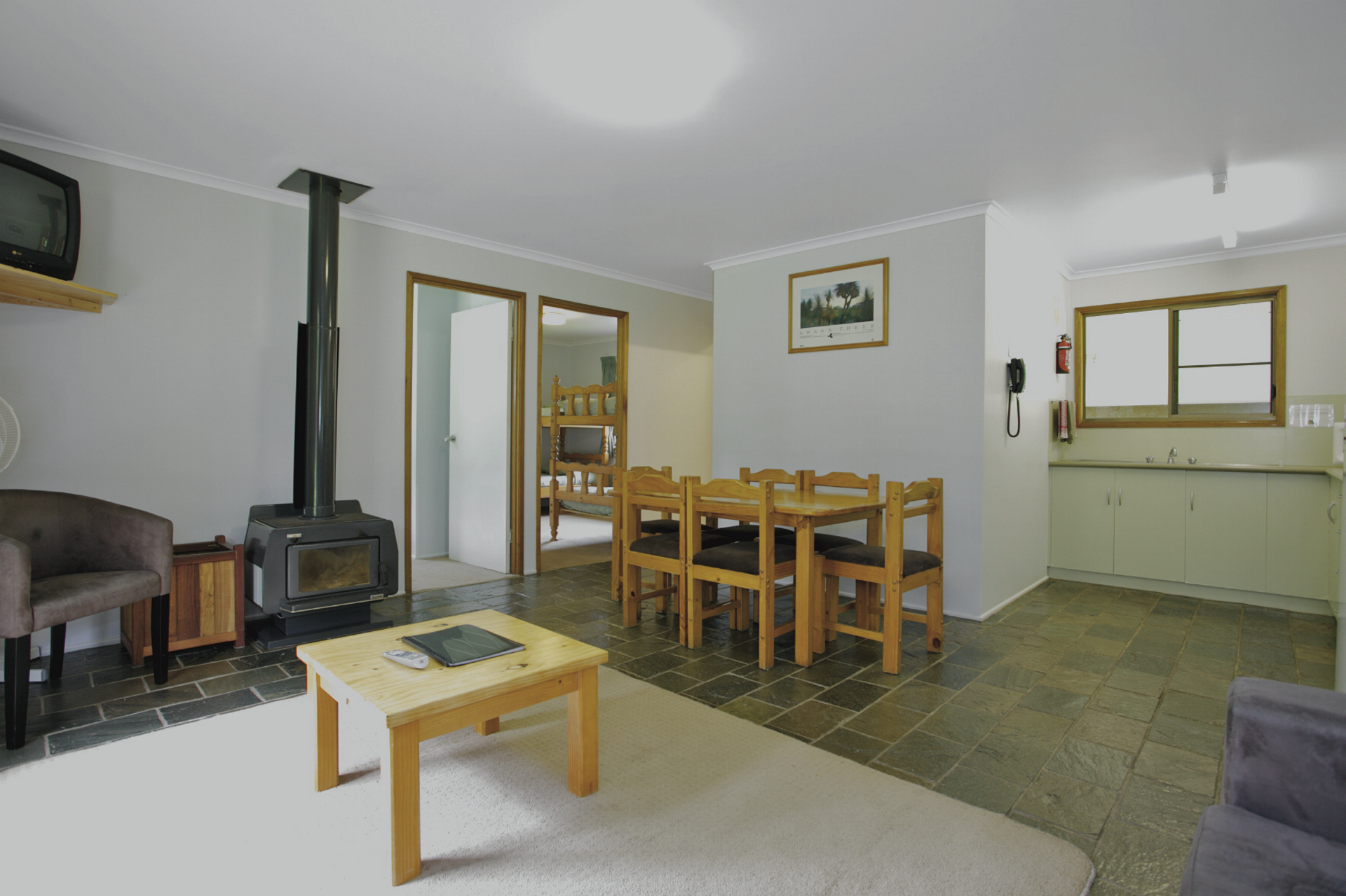 18 Unterkünfte im Blockhaus-Stil. Echidna-Zimmer mit Dusche/WC, TV, Radio, Telefon, Küchenzeile, Holzofen und Terrasse, Cedar Lodges mit Wohn-/Essbereich und separatem Schlafzimmer. Jeweils 3-4 Einheiten in einem Haus. Die Broken River Lodge ist ein freistehender Bungalow mit Wohn-/Essbereich und 2 Schlafzimmern.