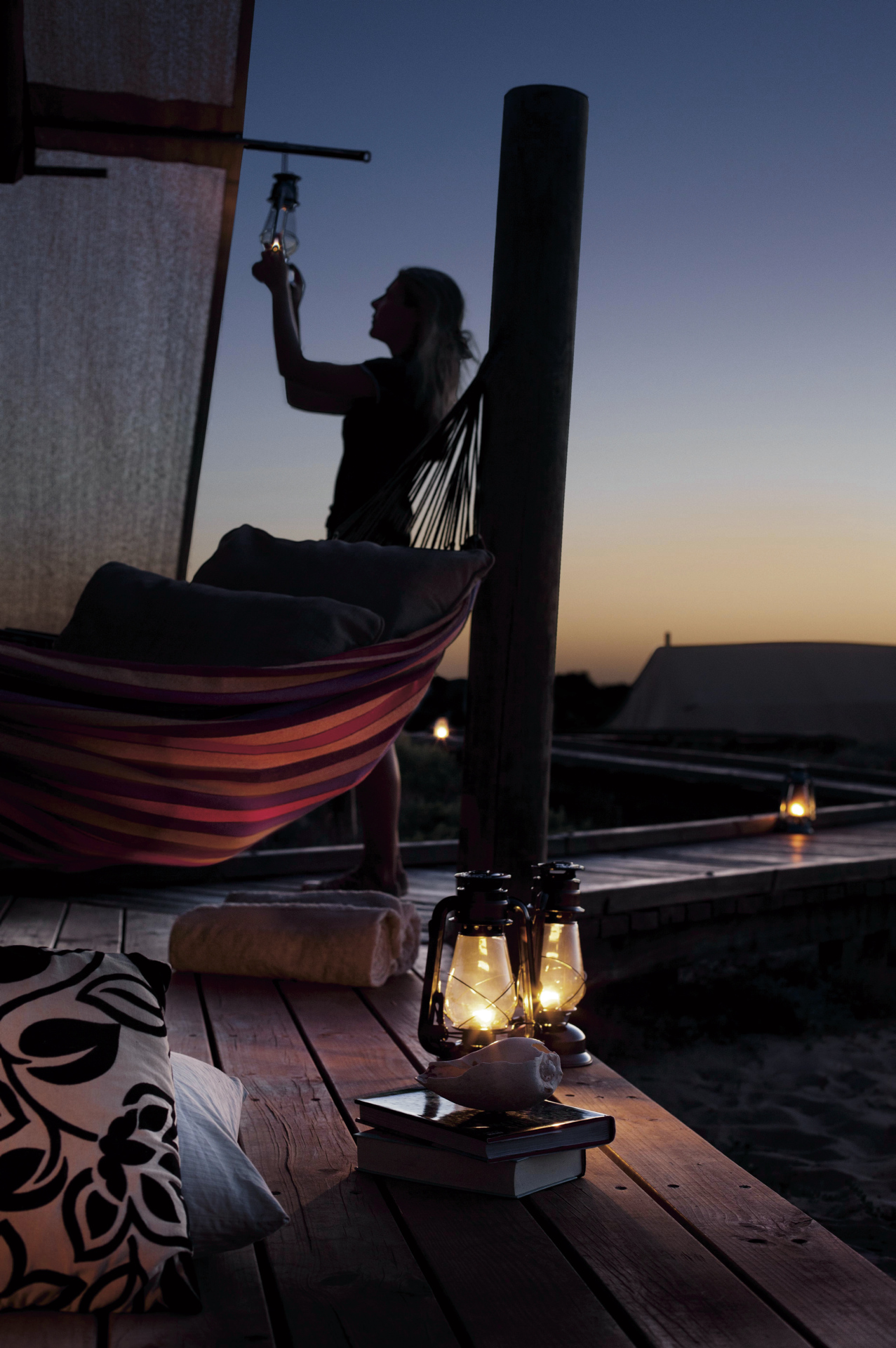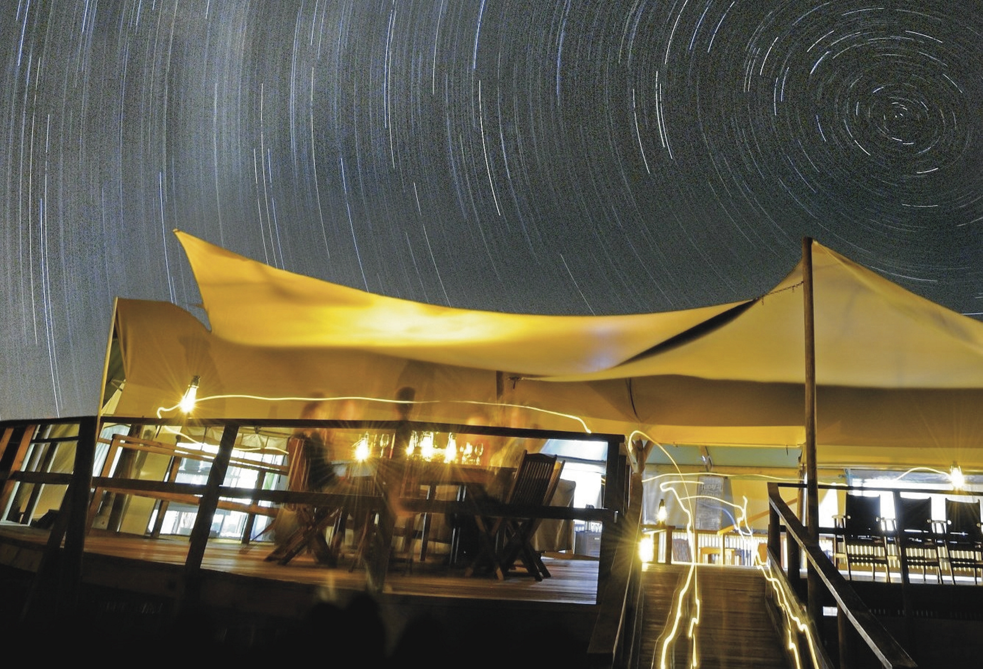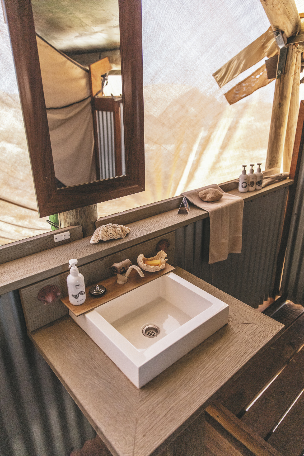 Lediglich 9 geräumige, auf Plattformen errichtete Zelte, qualitativ hochwertig eingerichtet und mit eigenem Bad mit Solar-Dusche und WC, aber ohne TV, Telefon oder Minibar.
