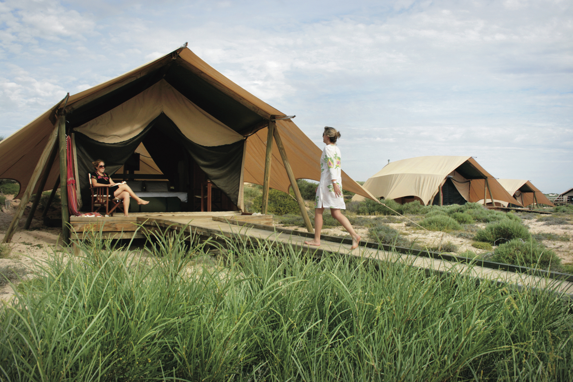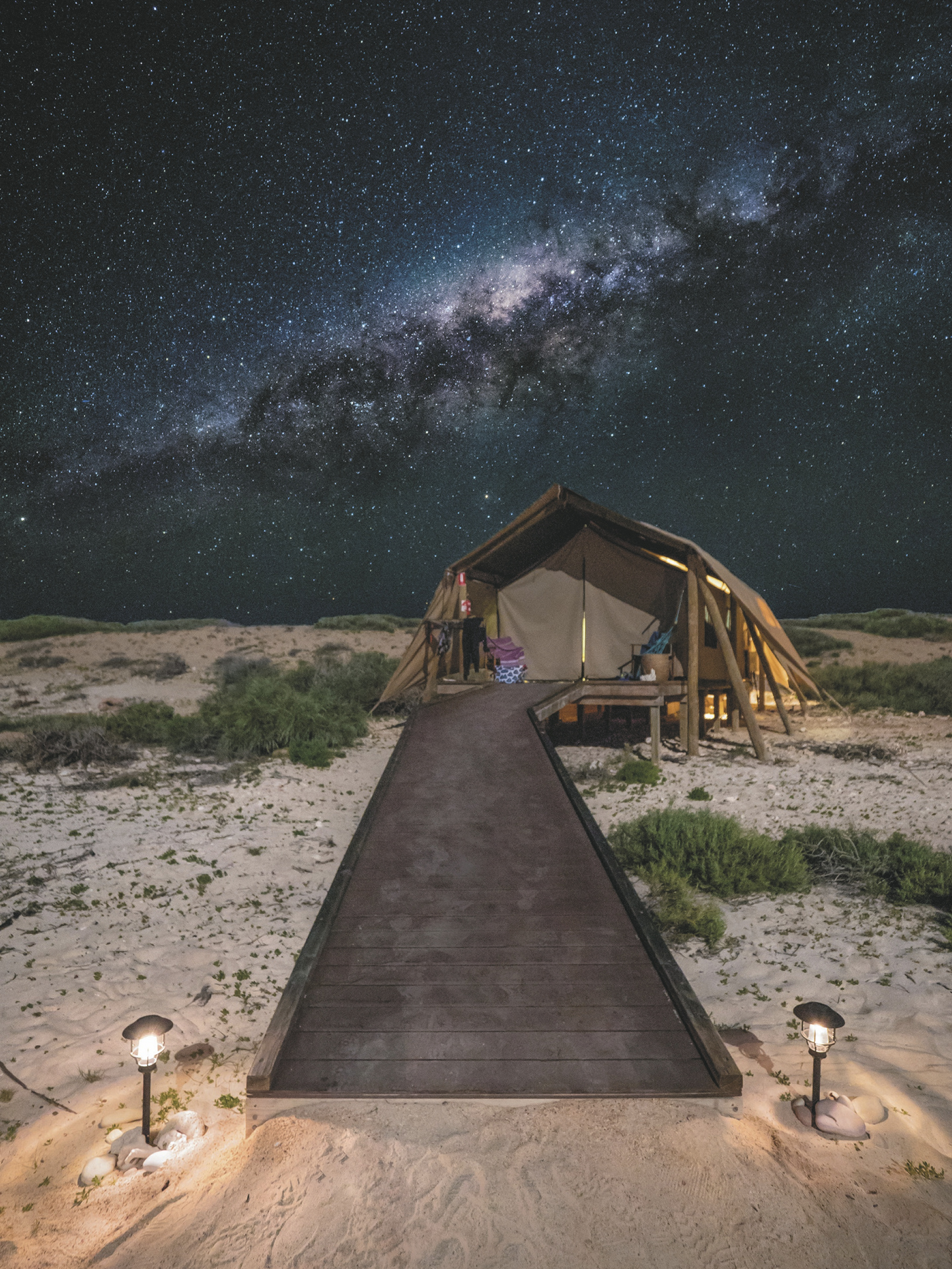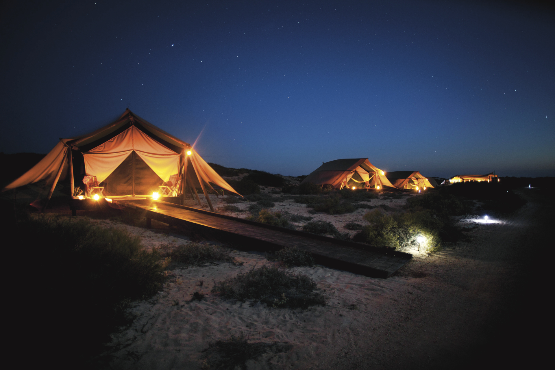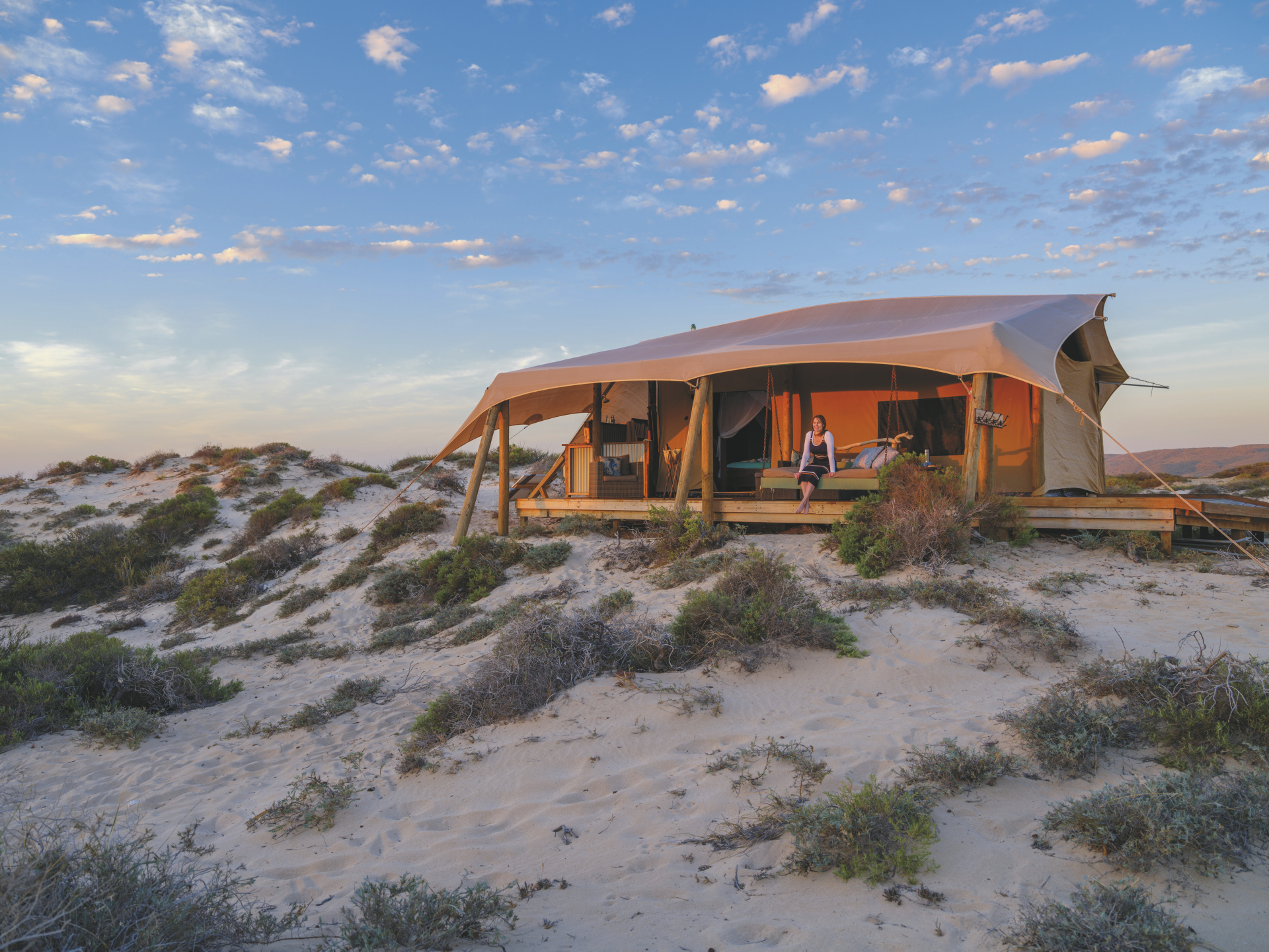Ein exklusives Safari-Camp versteckt in den weißen Sanddünen des Cape Range Nationalparks.