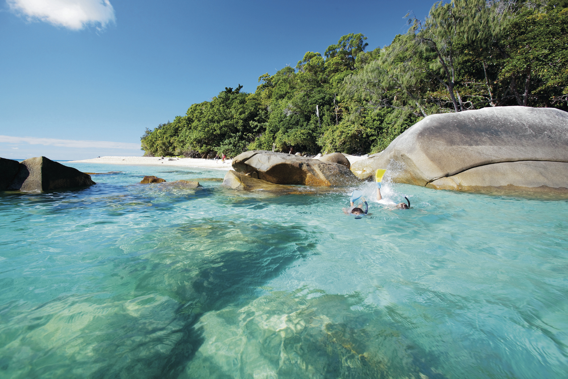 Einfach erreichbar, nur ca. 30 km von Cairns entfernt. Auf einer Insel mit üppigem Regenwald und schönen Granitformationen.