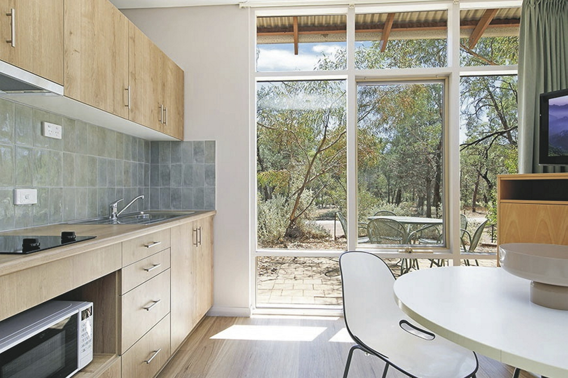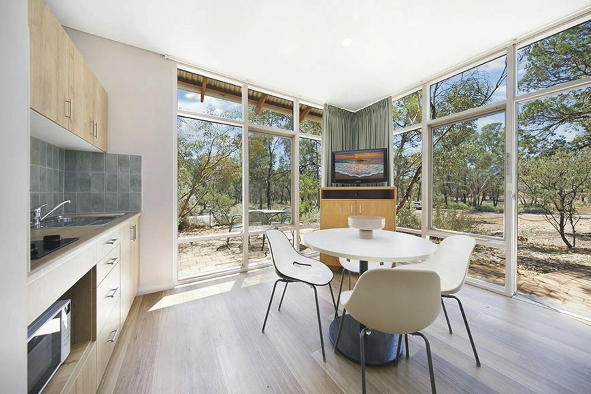 60 Zimmer. Einfachere Aroona-Zimmer im Motelstil oder komfortablere Heysen-Zimmer in hellen Bungalows mit kleiner Terrasse. Alle mit Klimaanlage, Badezimmer mit begehbarer Dusche, TV, Kühlschrank und Tee-/Kaffeezubereiter. Edeowie-Zimmer verfügen zusätzlich über eine kleine Küchenzeile mit Herd und Mikrowelle. Im Ikara Safari Camp (800 m vom Resort entfernt) 15 Bungalowzelte mit Holzfußboden, bequemem Bett, Dusche/WC und Klimaanlage/Heizung.