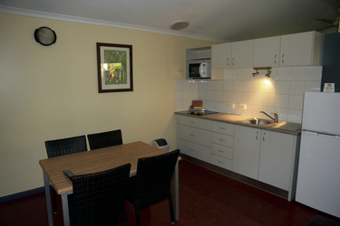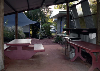 Die moderne Anlage liegt in einem großen tropischen Garten mit schattigen Rasenflächen und bietet den Gästen einen Pool, einen Münzwaschsalon sowie einen BBQ-Bereich mit Gasgrills, Tischen/Bänken und Sonnenschirmen. Kein Restaurant und kein Internetzugang.