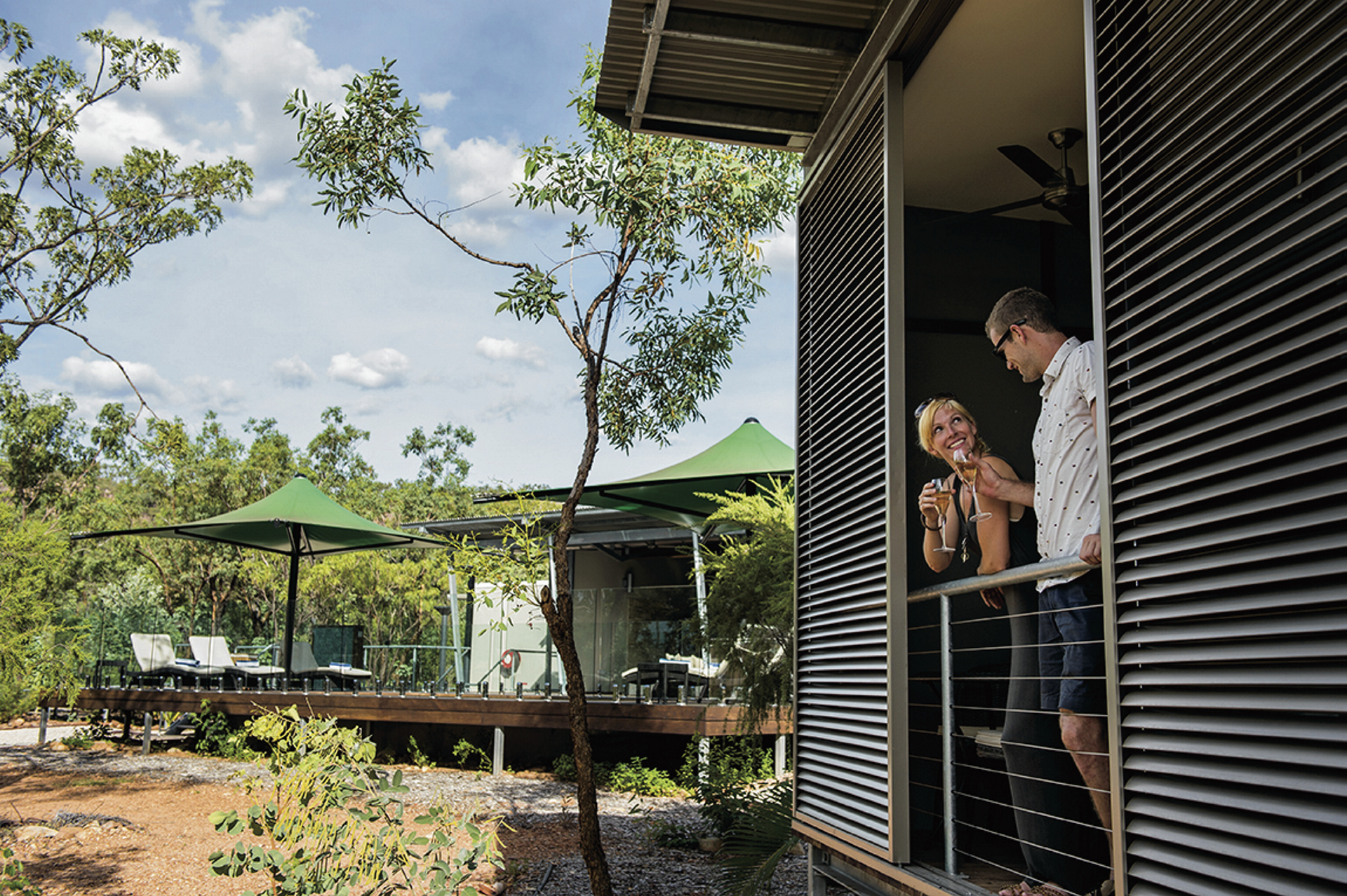 In der sorgfältig in die Naturlandschaft integrierten, 2013 in modernem Design errichteten Cicada Lodge erwartet den anspruchsvollen Gast ein natürlich-australisches Wildniserlebnis und eine authentische Aborigines-Kultur. Durch große Panoramafenster fällt der Blick auf die herrliche Landschaft. Der unaufdringliche Service und das kulinarische Angebot setzen Maßstäbe in der Region. Ein Pool sorgt für Erfrischung, private Touren können organisiert werden. WLAN ist kostenfrei.