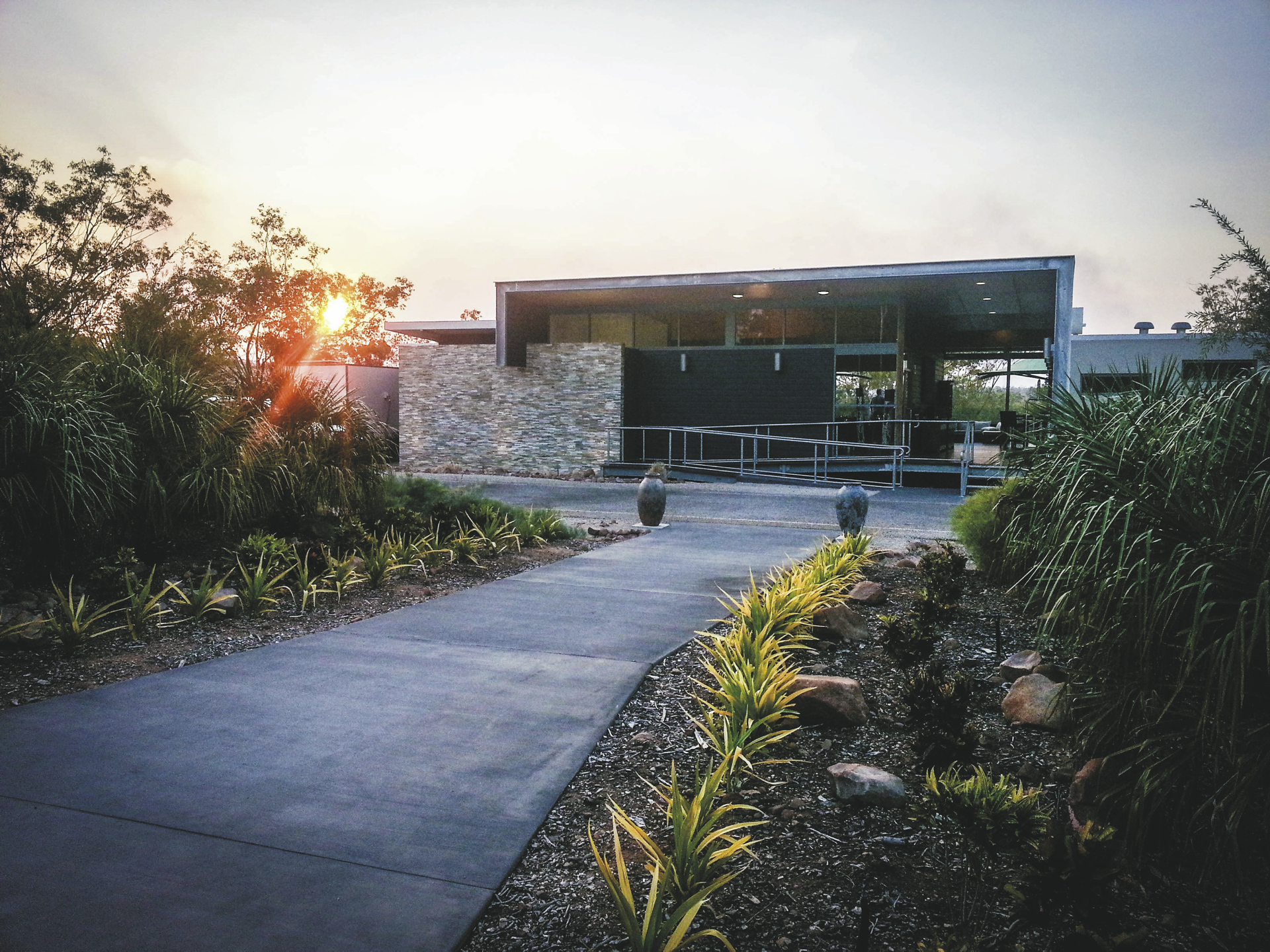 Auf dem Felsplateau oberhalb des majestätischen Katherine River, in Gehentfernung zum Eingang der Nitmiluk Gorge (Katherine Schlucht). 30 km vom Ortszentrum Katherine entfernt.