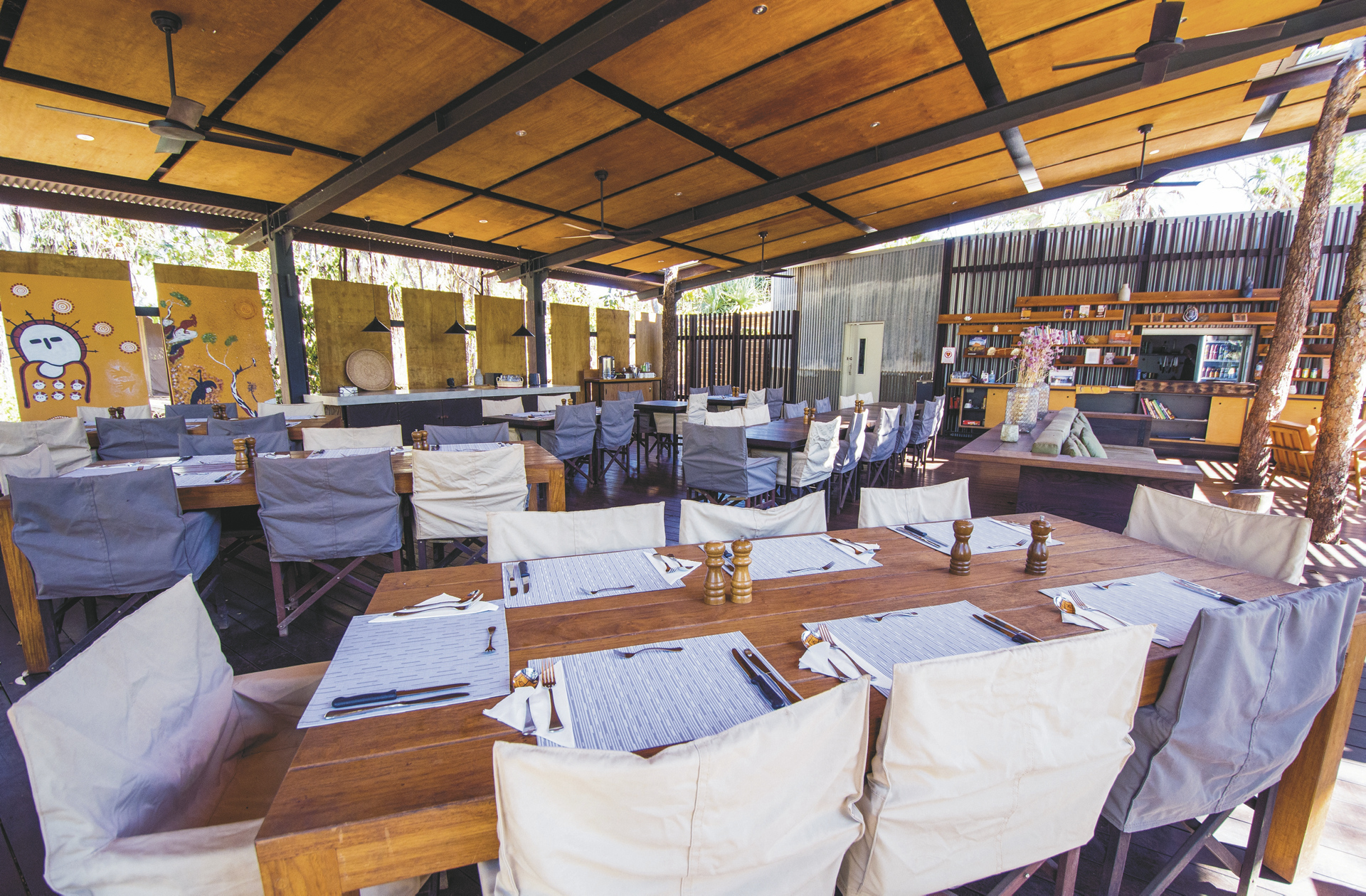 Harmonisch in die unberührte Landschaft eingepasste, von Livistonia-Palmen und Eukalyptusbäumen umgebene APT Wilderness Lodge, nahe zu den beeindruckenden Mitchell Wasserfällen.