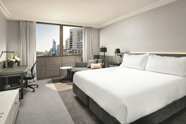 486 Zimmer. Darunter Premier-Zimmer im 19.-23. Stock mit bester Aussicht (teilweise auch auf den Swan River), komfortabel ausgestattet u.a. mit King Size- oder zwei Einzelbetten, Schreibtisch, Klimaanlage, Bad/WC, Bademänteln, TV, Minibar, Zimmersafe und Tee-/Kaffeezubereiter.
