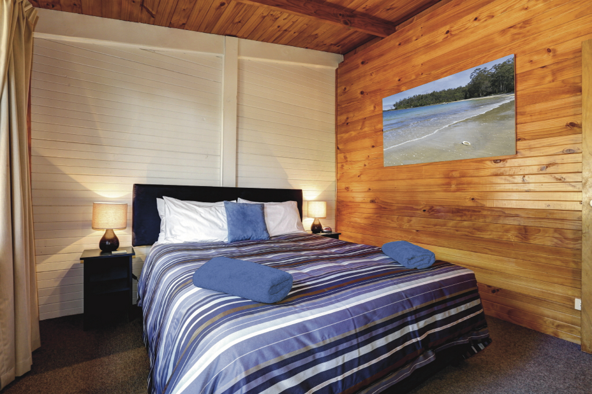 19 Cabins (Bungalows) mit 1 oder 2 Schlafzimmern, Bad/WC, Küche, TV und Waschmaschine/Trockner. 21 jüngere Chalets mit 2 Schlafzimmern und 2 Bädern. Alle Unterkünfte mit Klimaanlage und Balkon bzw. Aussichtsdeck.