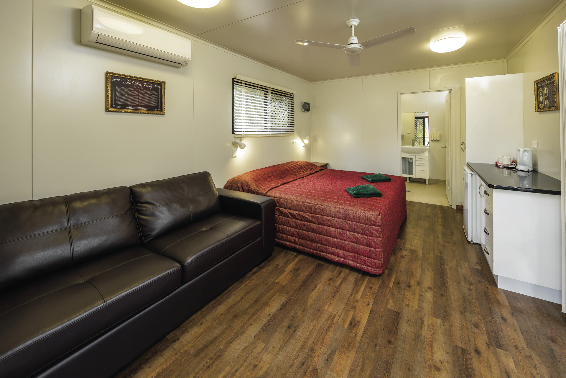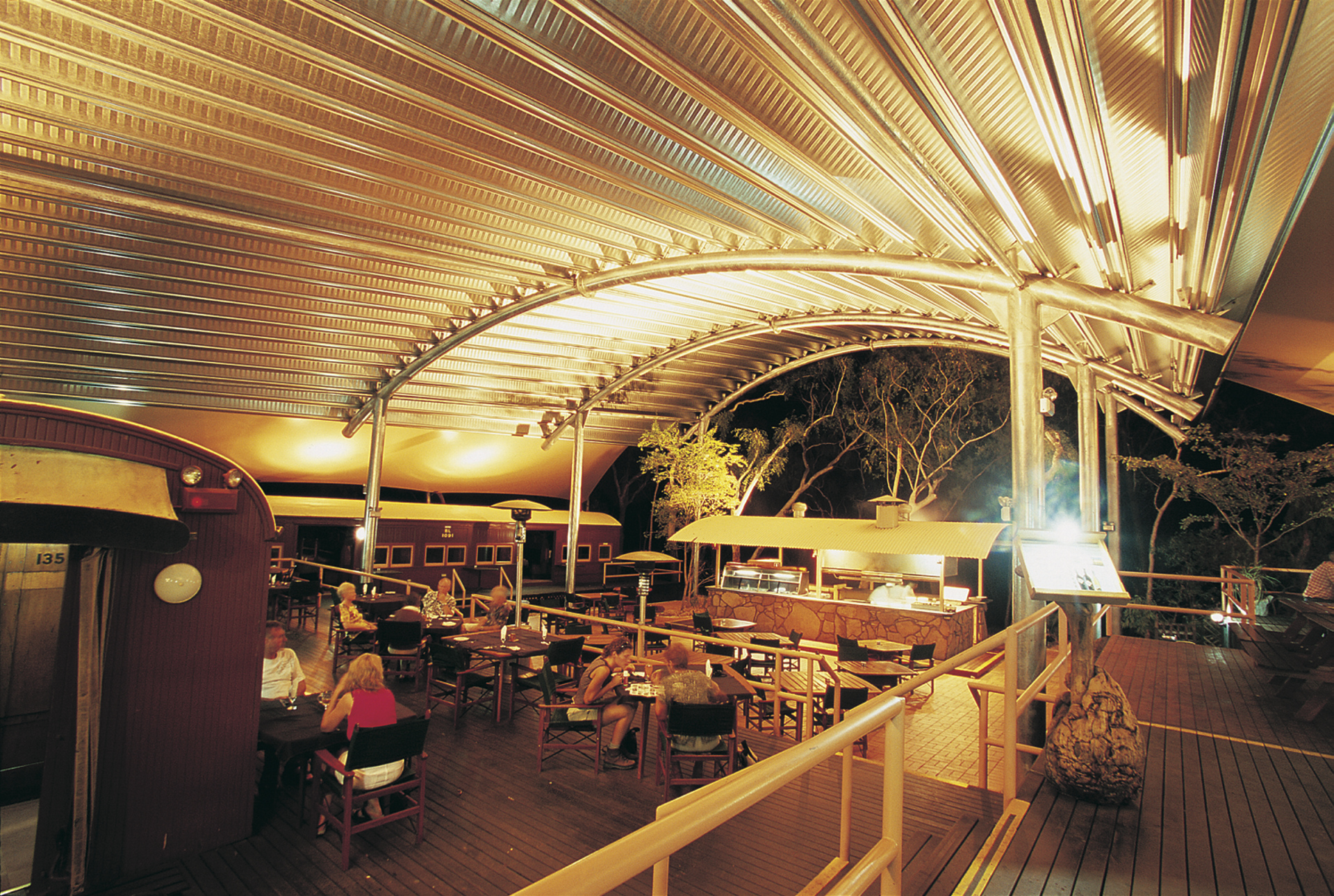Erleben Sie authentische Outback-Atmosphäre. Das Buschfrühstück wird unter offenem Himmel serviert, Mittag- und Abendessen im Salonwagon und im Fettlers Iron Pot Bistro (hier WLAN gegen Gebühr). Ein Pool rundet das Angebot ab.