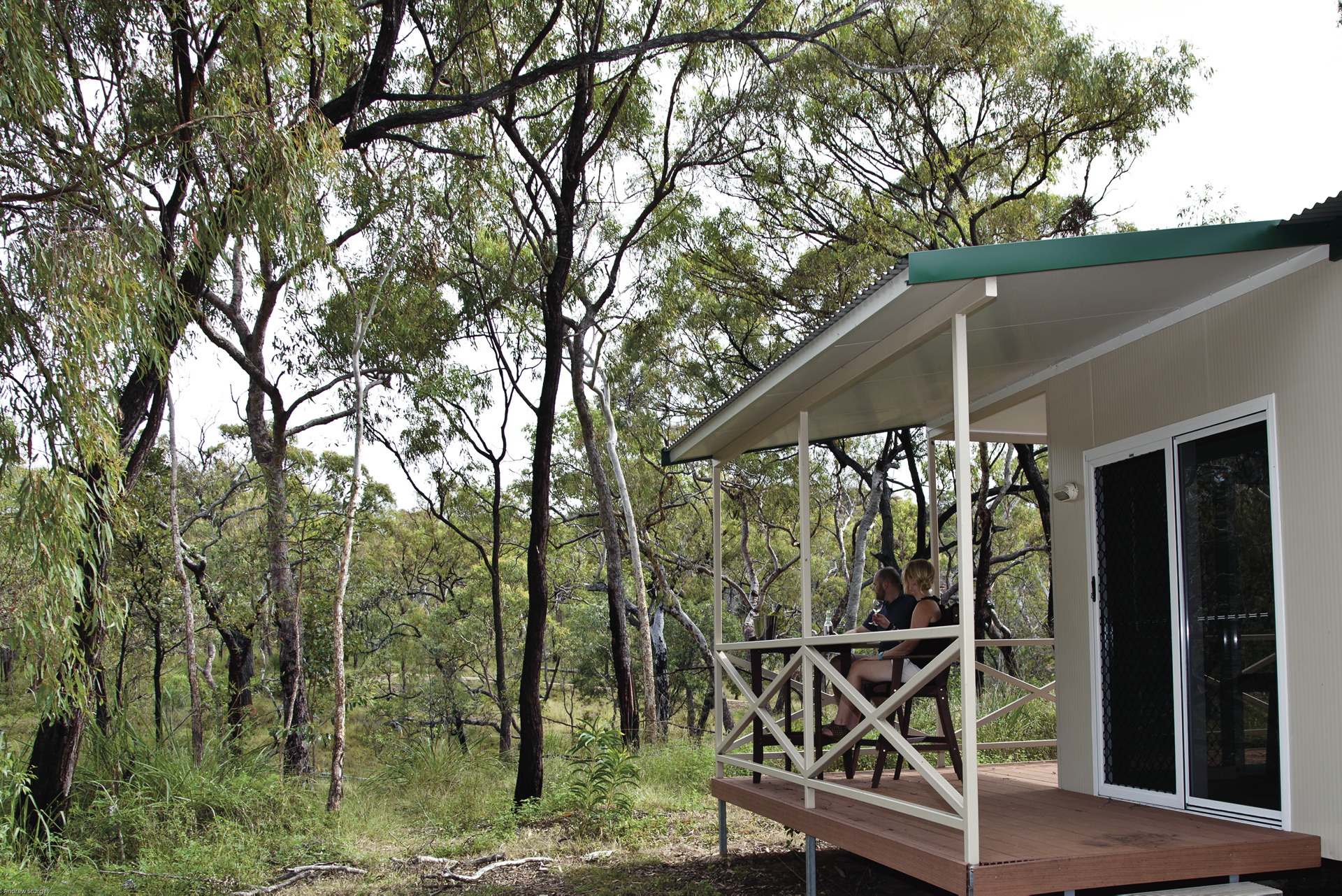 Originelle Outback-Unterkunft in typischer Savannenlandschaft.