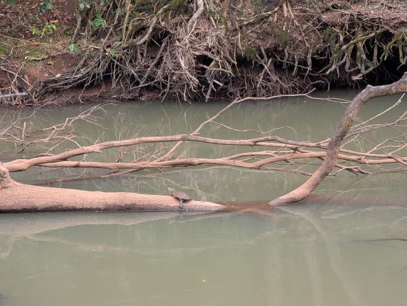 Nur wenige Minuten entfernt liegt der Bonadio RV Nature Park, unser nächstes Ziel. Er liegt am Barron River, in dem wilde Schnabeltiere leben. Wir spazieren am Fluss entlang und finden zunächst nur eine Schildkröte.