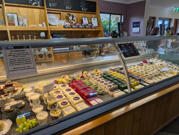 Anschließend machen wir einen Stopp an der Farm Gallo Dairyland, wo wir prämierten Käse und eine Kostproben an Schokopralinen kaufen. Die Pralinen schmecken allen und der Käse ist wirklich lecker und passt zu unserem Wein. Wir probieren den prämierten Chili-Käse ummantelt von rotem Wachs und den grün eingepackten Regenwald-Käse der Region.
