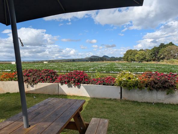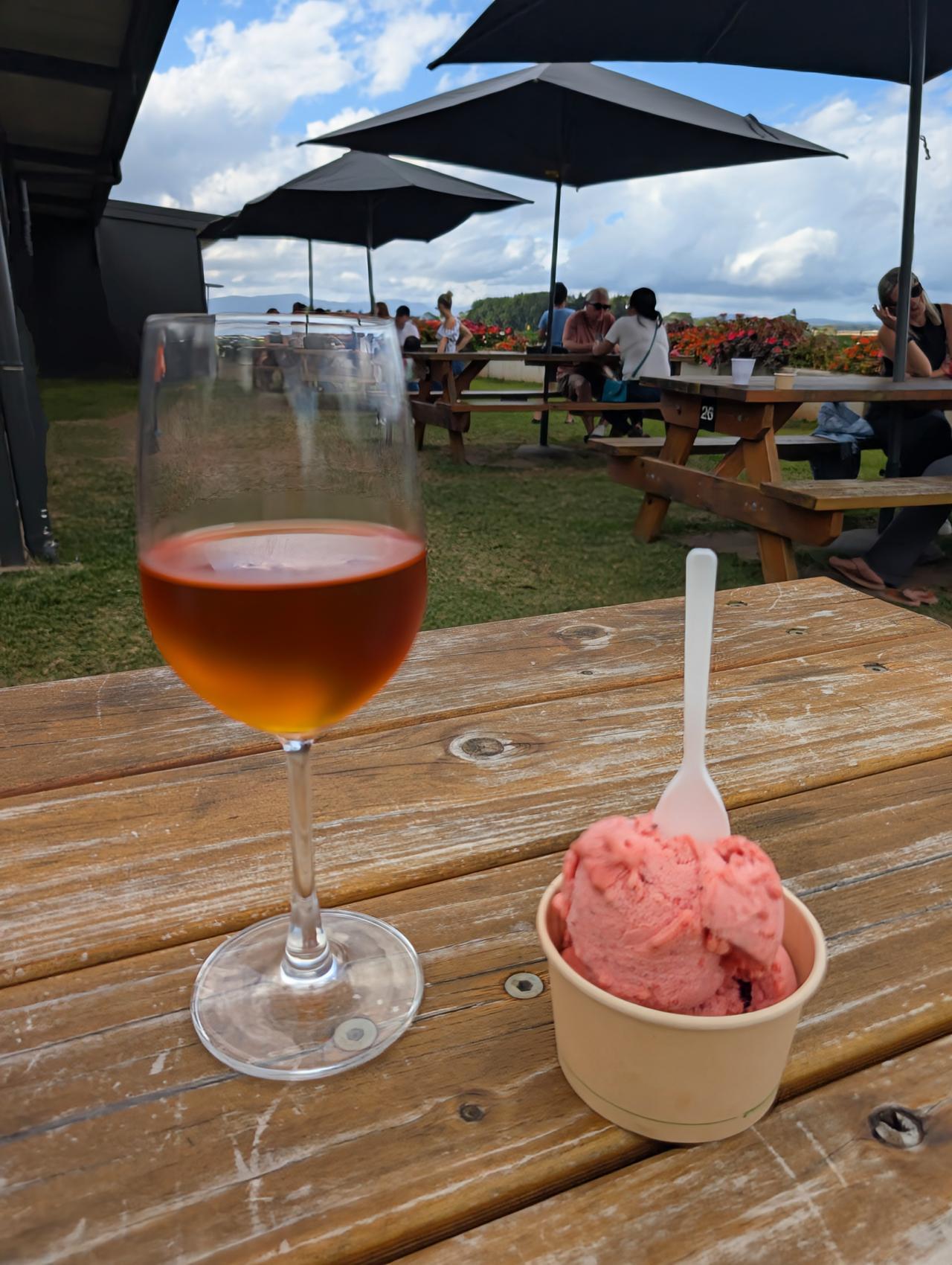 Unser nächster Stopp ist die Shaylee Strawberry Farm. Wir pflücken zwar keine Erdbeeren, genießen aber das äußerst geschmackvolle Erdbeer-Sorbet aus eigener Herstellung. Und ich koste vom Erdbeer-Wein, den ich wirklich mag.