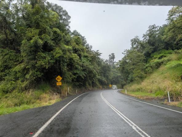 Ich habe über die inzwischen verlassene Nerada Tea Factory gelesen. Mit etwas Geduld und Glück kann man dort wohl Lumholtz Baumkängurus entdecken. Wegen des Regens und unseren schwachen Sichtungserfolgen im Regenwald bisher, verzichten wir auf den Umweg und die Suche. Anscheinend kommen Baumkängurus aber gerade bei Regen häufiger hinab von den hohen Bäumen, in denen sie sich sonst verstecken.