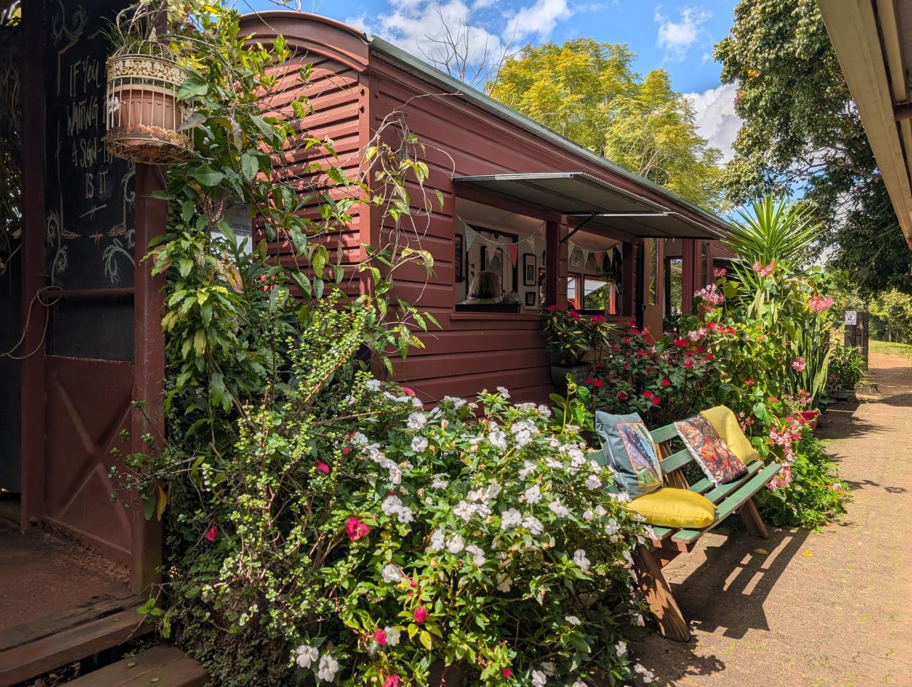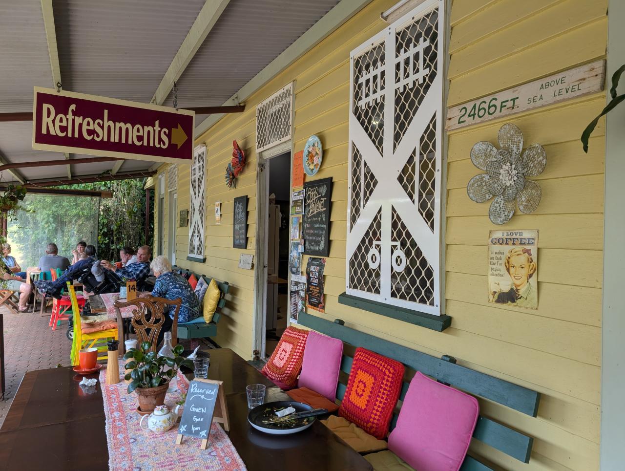 Wir brauchen einen Snack und finden am Rande von Atherton das urige The Station Café. Es wurde in alte Eisenbahnwaggons gebaut. Die etwas rustikale Atmosphäre finden wir richtig charmant. Und Mahlzeiten und Getränke sind lecker. Kaffeebohnen werden ebenfalls in den Ahterton Tablelands angebaut, kommen also von hier.