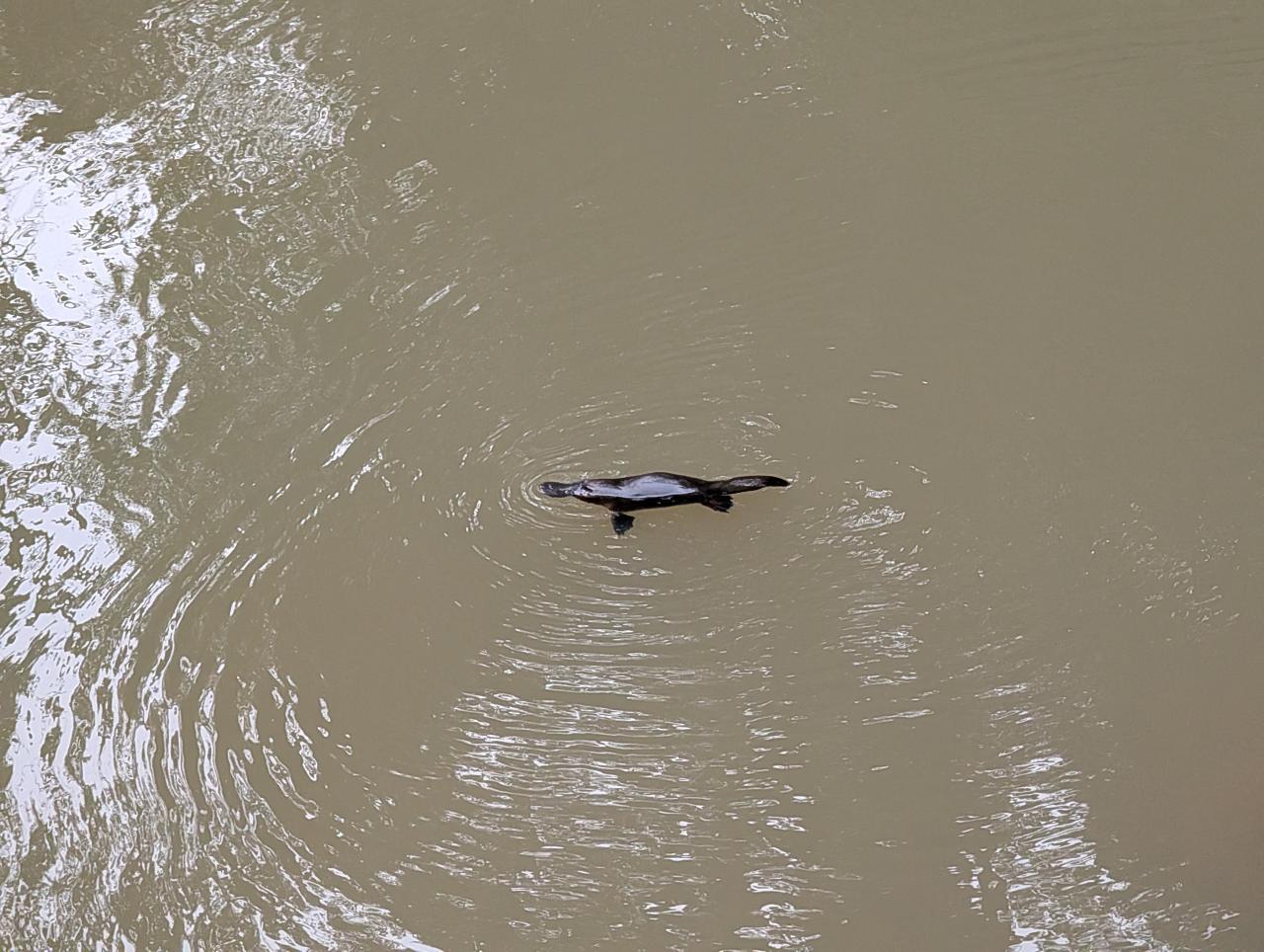 Auf dem Rückweg - langsam dämmert es - entdecken wir dann drei oder vier der bizarr anmutenden Tiere. Manchmal hören wir ein Ploppen, wenn ein Schnabeltier auftaucht. Meistens sind sie sehr leise und tauchen immer wieder auf und ab. Schwimmend sehen sie am niedlichsten aus, wenn sie wie wild mit ihren Vorderfüßen paddeln.