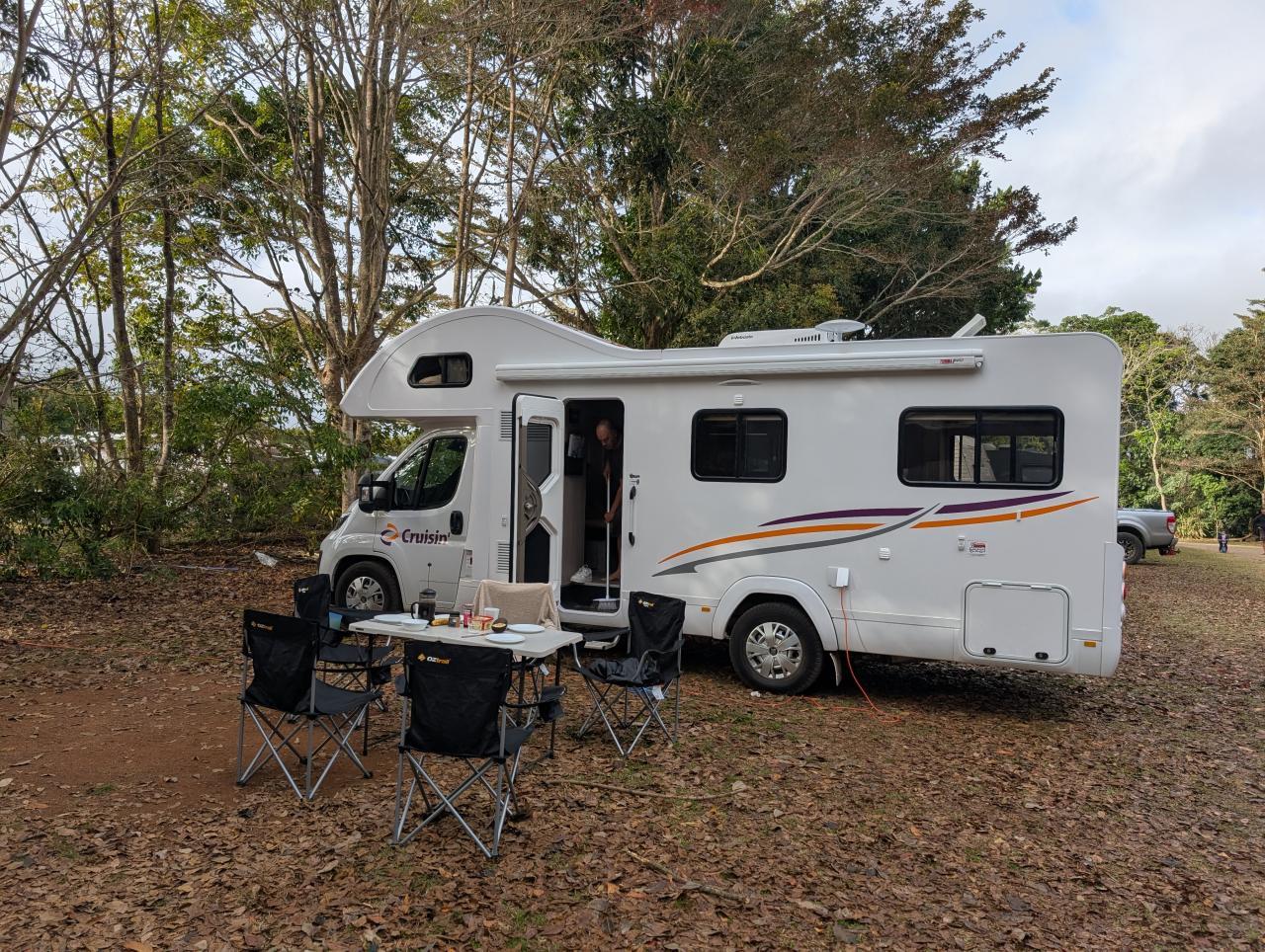 Die Atherton Tablelands erreichen wir über die Rex Range Road von Norden kommend. Ein kurzer Stopp am Rex Range Lookout bietet ein schönes Fotomotiv über die Berglandschaft. Vor der Stadt Mareeba erwartet mich viel Natur. Ein Campingplatz ermöglicht übrigens wildes Campen.