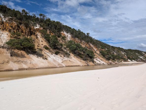 K'gari ist ein Touristenmagnet. Glasklare Seen und Bäche laden ein, entdeckt zu werden - willkommene Abkühlungen inklusive. Mir ist es einmal gelungen, eine Schildkröte beim Schwimmen im Lake McKenzie zu sichten. Auf Fraser Island leben zudem Dingos, wilde Hunde, deren Sichtung aufregend sein kann - insbesondere, wenn man in Australien mit Kindern unterwegs ist. Die Bäume und Pflanzen in den Regenwäldern auf Fraser Island sind vielseitig. Ich finde es jedes Mal, wieder faszinierend, was alles auf Sand wächst: darunter Farne, Palmen und Kiefern.