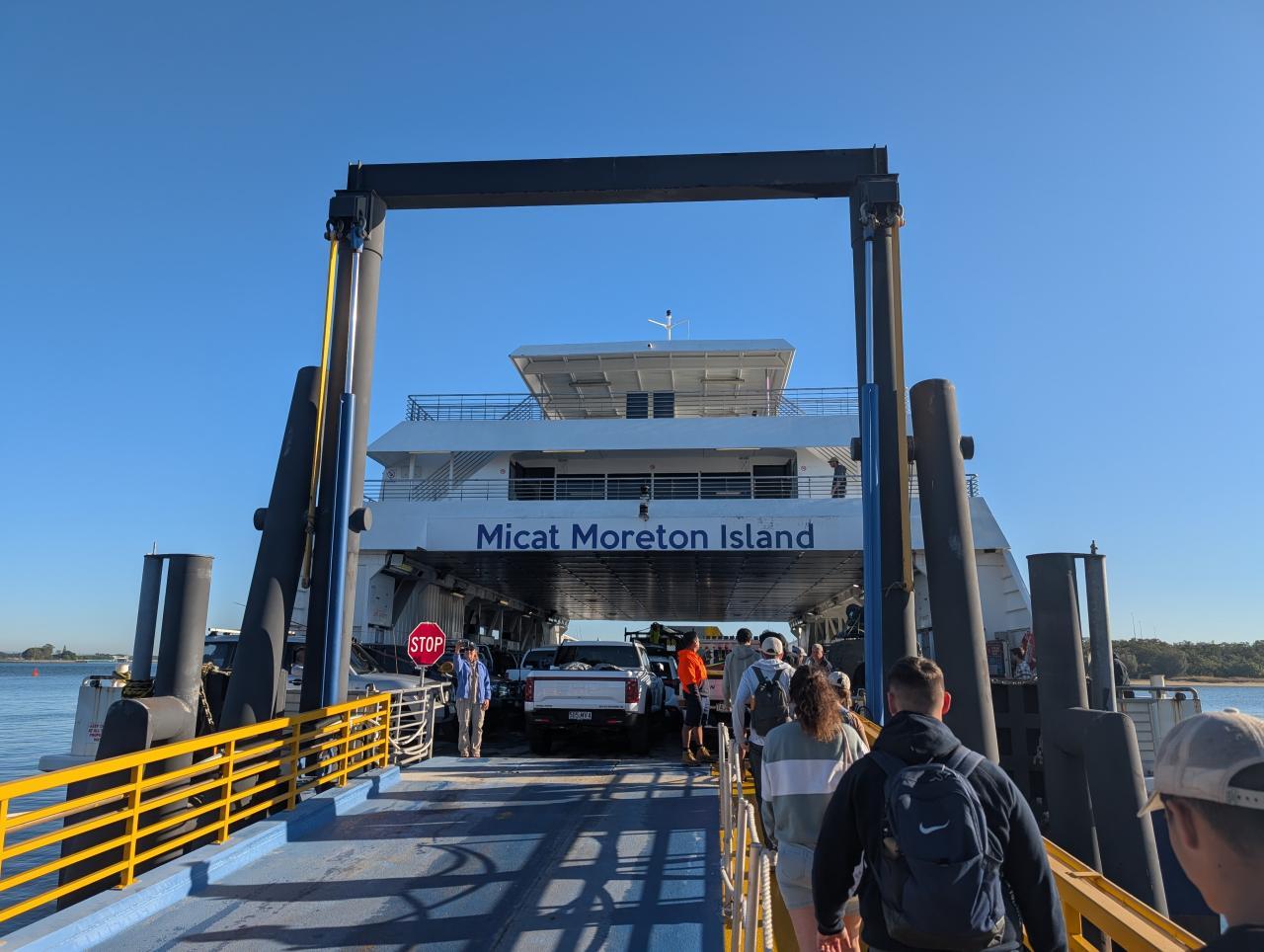 Auf Moreton Island gibt es - wie auf Fraser Island (K'gari) - nur Sandpisten für Geländefahrzeuge. Die Fähre Micat setzt in der Früh vom Port of Brisbane in 90 Minuten nach Moreton Island über und fährt am Nachmittag wieder zurück. An Bord dürfen ausschließlich Allradwagen und Fußpassagiere.