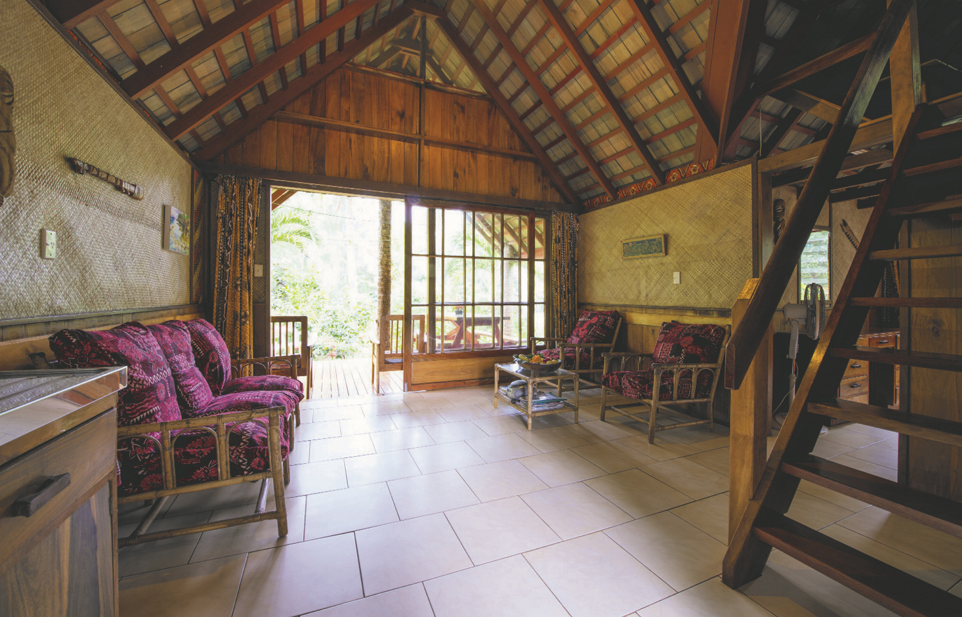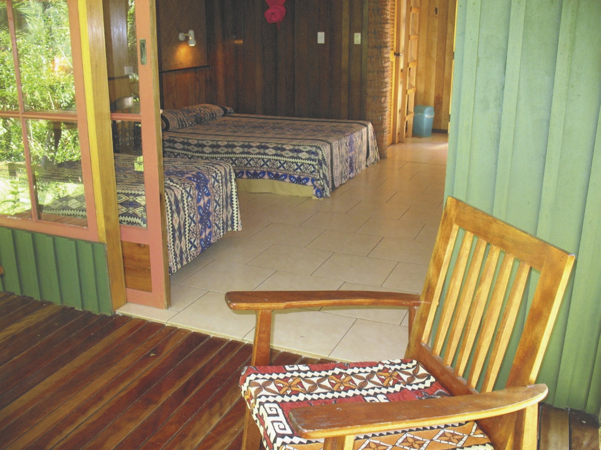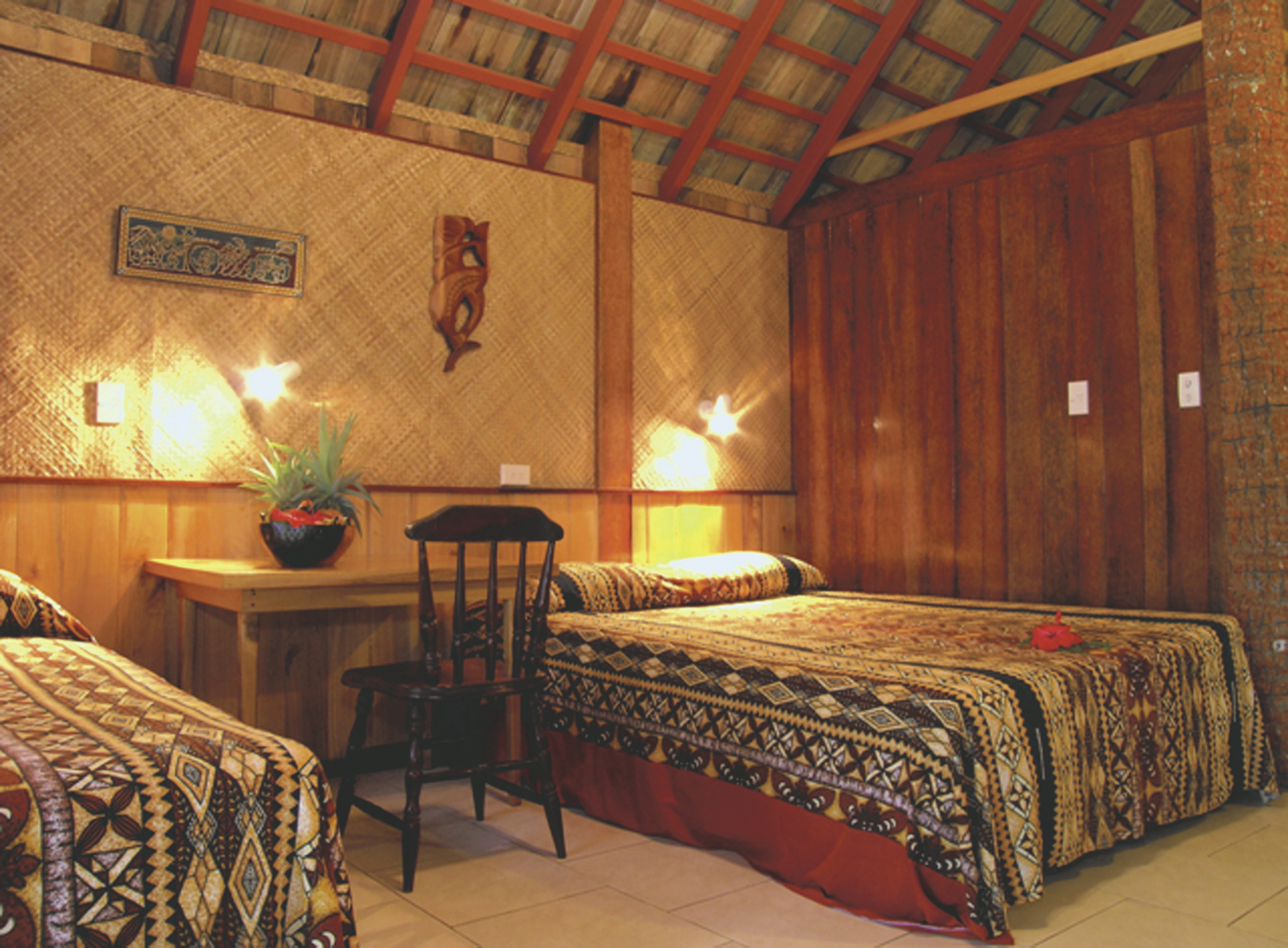5 Bungalows und eine Familienvilla sind aus Inselhölzern erbaut. Jeder Bungalow verfügt über Terrasse, Ventilator, Küche mit Kühlschrank, Tee-/Kaffeezubereiter, Radio und WLAN gratis. Es gibt kein TV im Zimmer. Sie bedienen sich in der Speisekammer mit frischen Produkten inklusive heimischem Kaffee aus Atiu und bezahlen bei der Abreise, so ist die Unterkunft auch bestens für Selbstversorger geeignet.