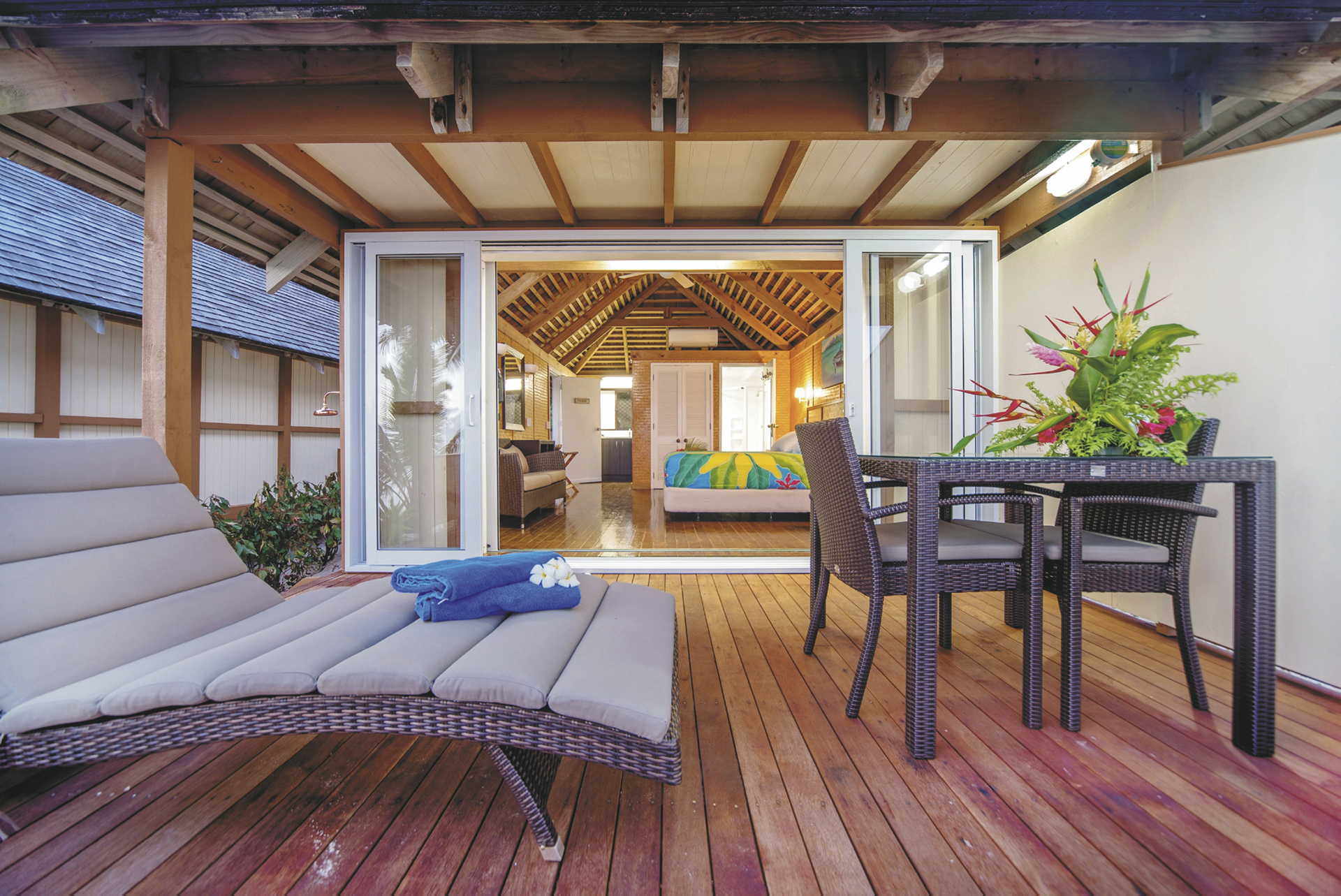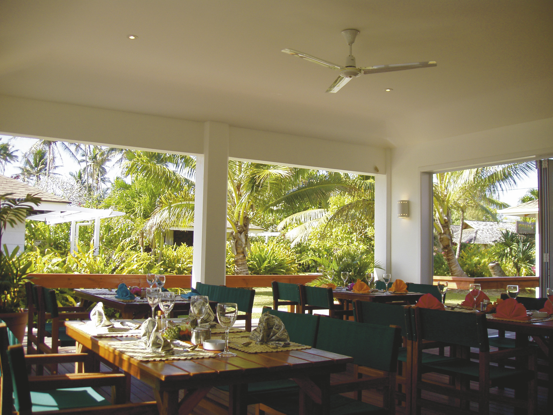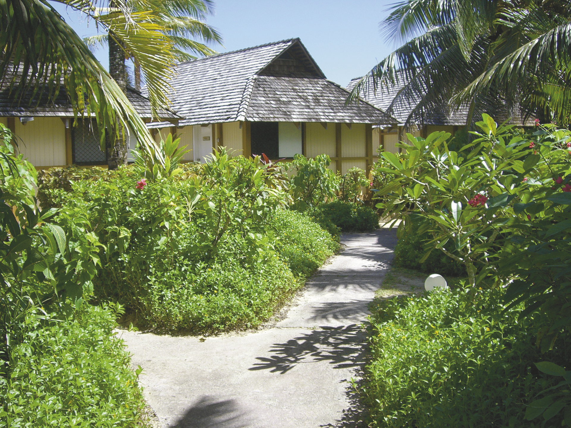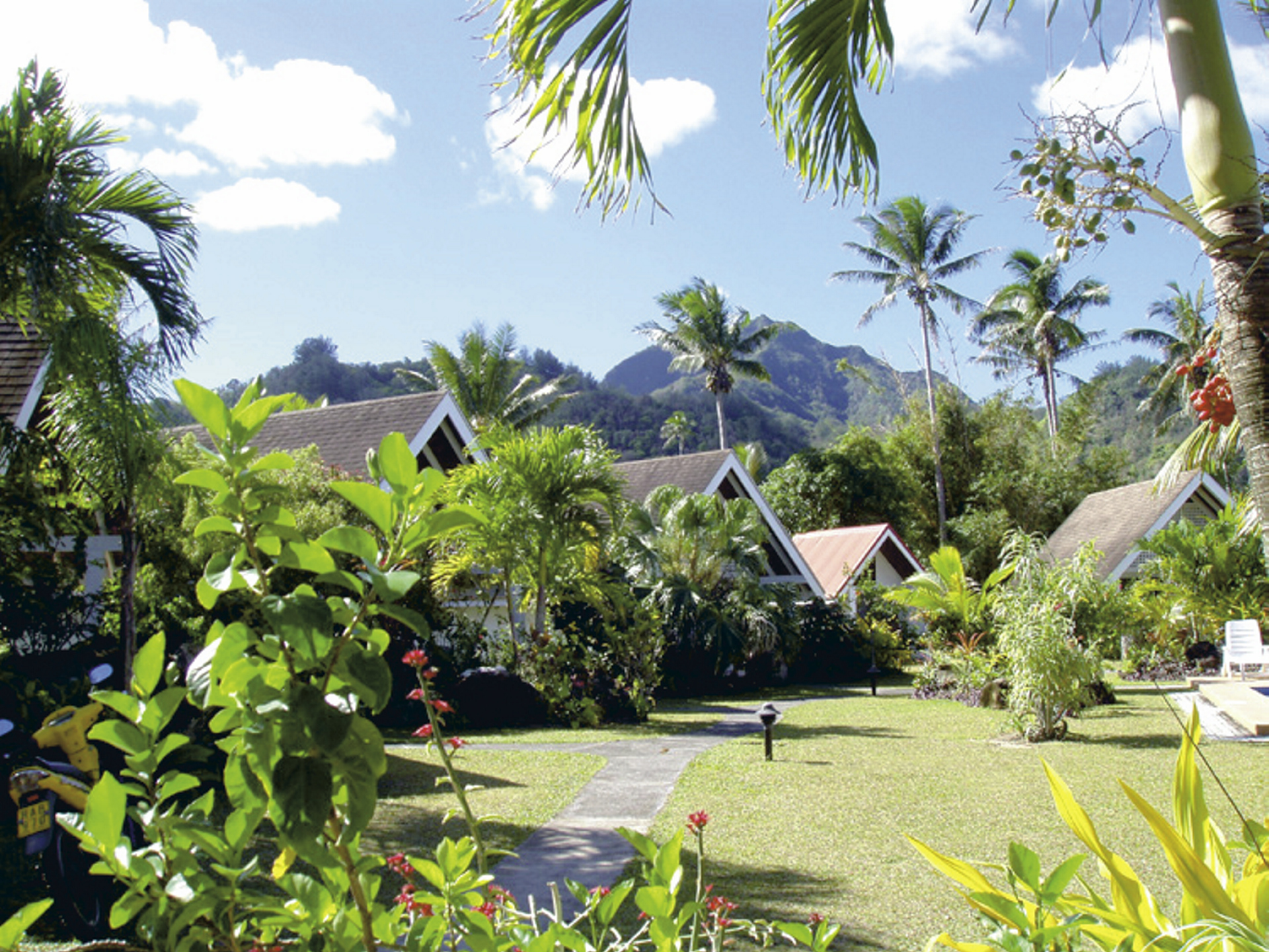 Der polynesische Charme der öko-zertifizierten (Mana Tiaki) Anlage macht sie bei allen Gästen sehr beliebt. 13 Garten-Studios sind umgeben von Hibiskus- und Frangipanipflanzen, weitere 9 stehen direkt am Strand. Auf der Gartenseite gibt es auch Grillmöglichkeiten, einen Pool und eine Lounge mit kleiner Bibliothek sowie das beliebte Restaurant mit Bar, in dem freitags Happy Hour mit Live-Musik und sonntags ein Büffet geboten wird. Kajaks und Schnorchelausrüstung können kostenlos geliehen werden, Mofas und Fahrräder gegen Gebühr.