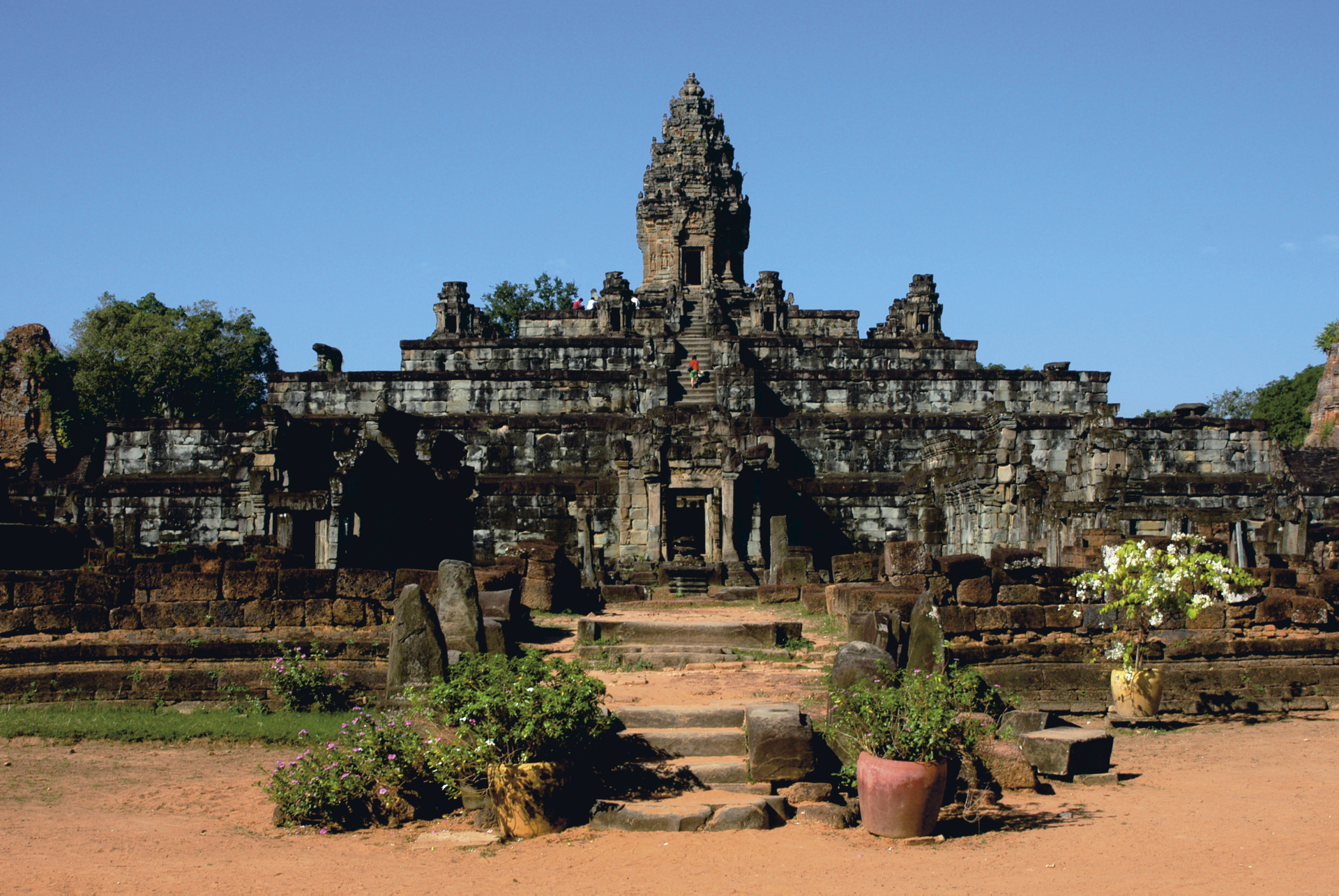 Am Morgen besuchen Sie den Ta Prohm-Tempel, der inmitten eines unberührten, wilden Dschungels liegt. Durch ein beeindruckendes Steintor erreichen Sie das Zentrum der antiken Stadt Angkor Thom, der letzten Hauptstadt des riesigen Khmer-Reiches. Hier können Sie die Elefantenterrasse und die Terrasse des Leprakönigs besuchen. Weiter geht es zum Staatstempel Bayon mit seinen 54 Gesichtertürmen. Am Nachmittag erkunden Sie die Tempel von Preah Kahn, Neak Poan und Mebon.