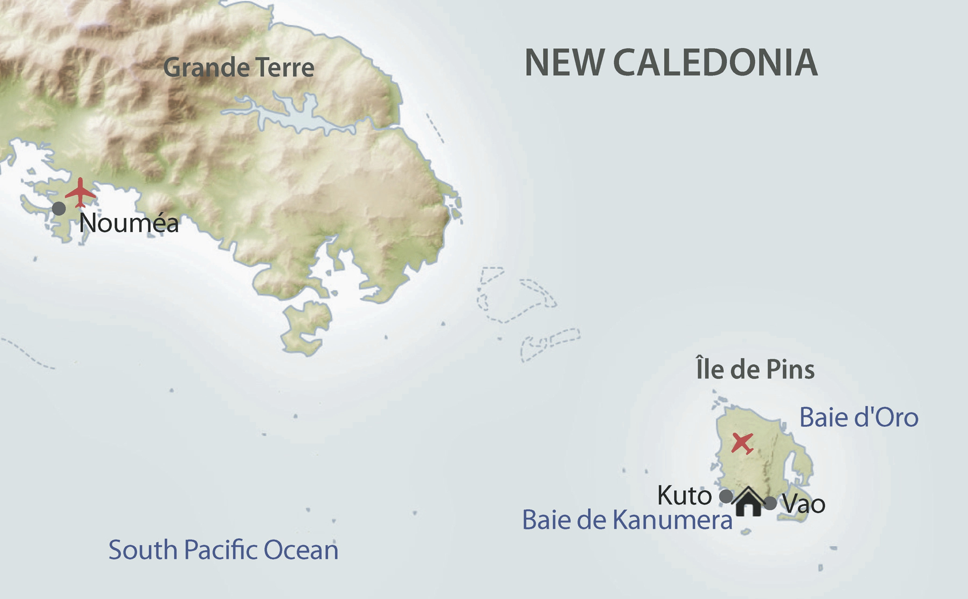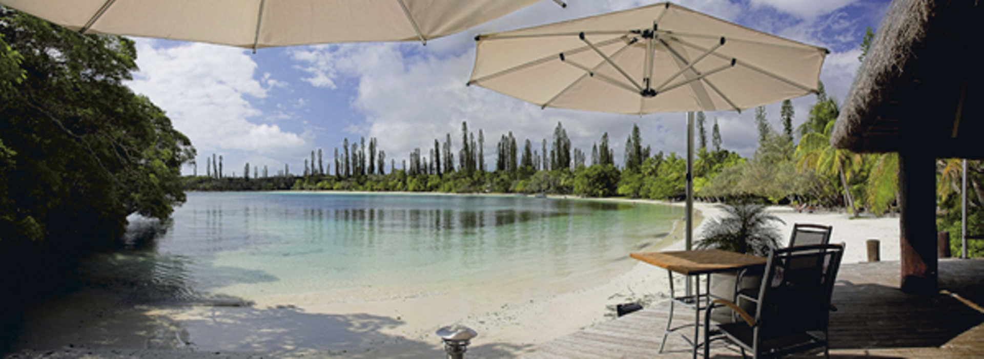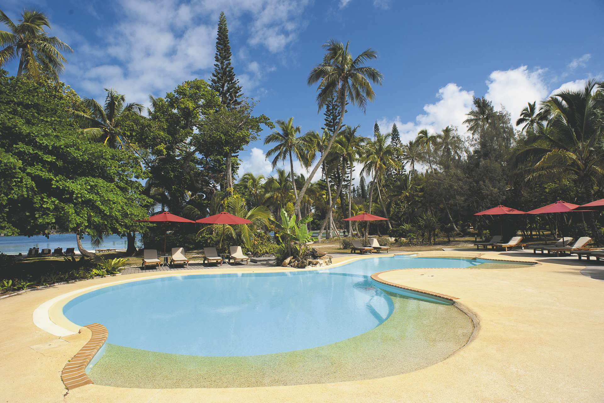 In der Kanumera Bucht auf der Ile des Pins. Schnorcheln Sie vom Resort aus in den warmen Gewässern der Bucht.