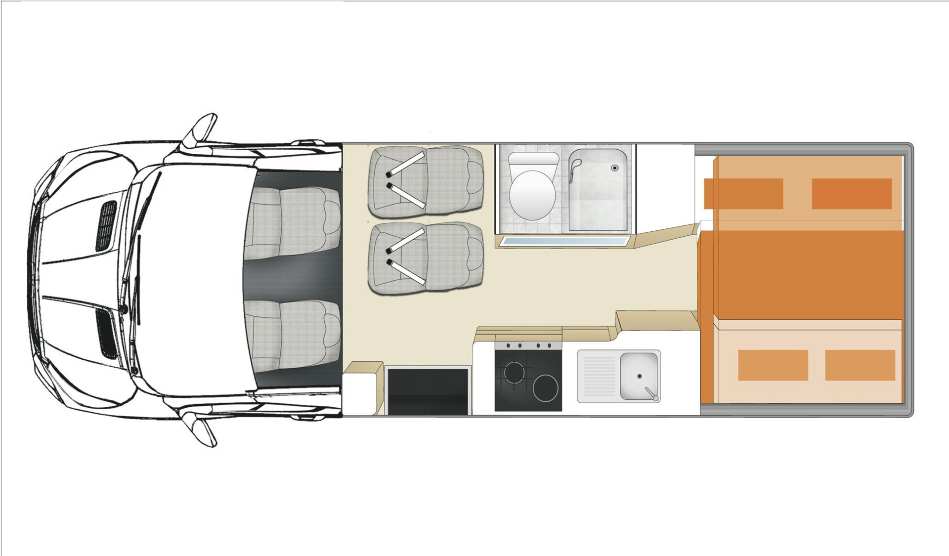 • 2 Sitzplätze im Wohnbereich hinter der Fahrerkabine