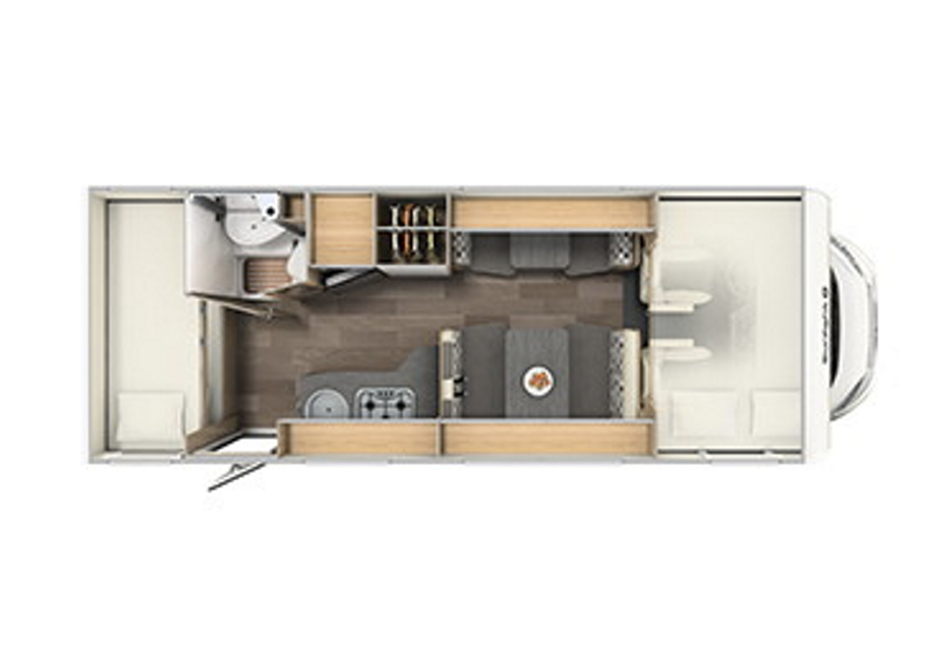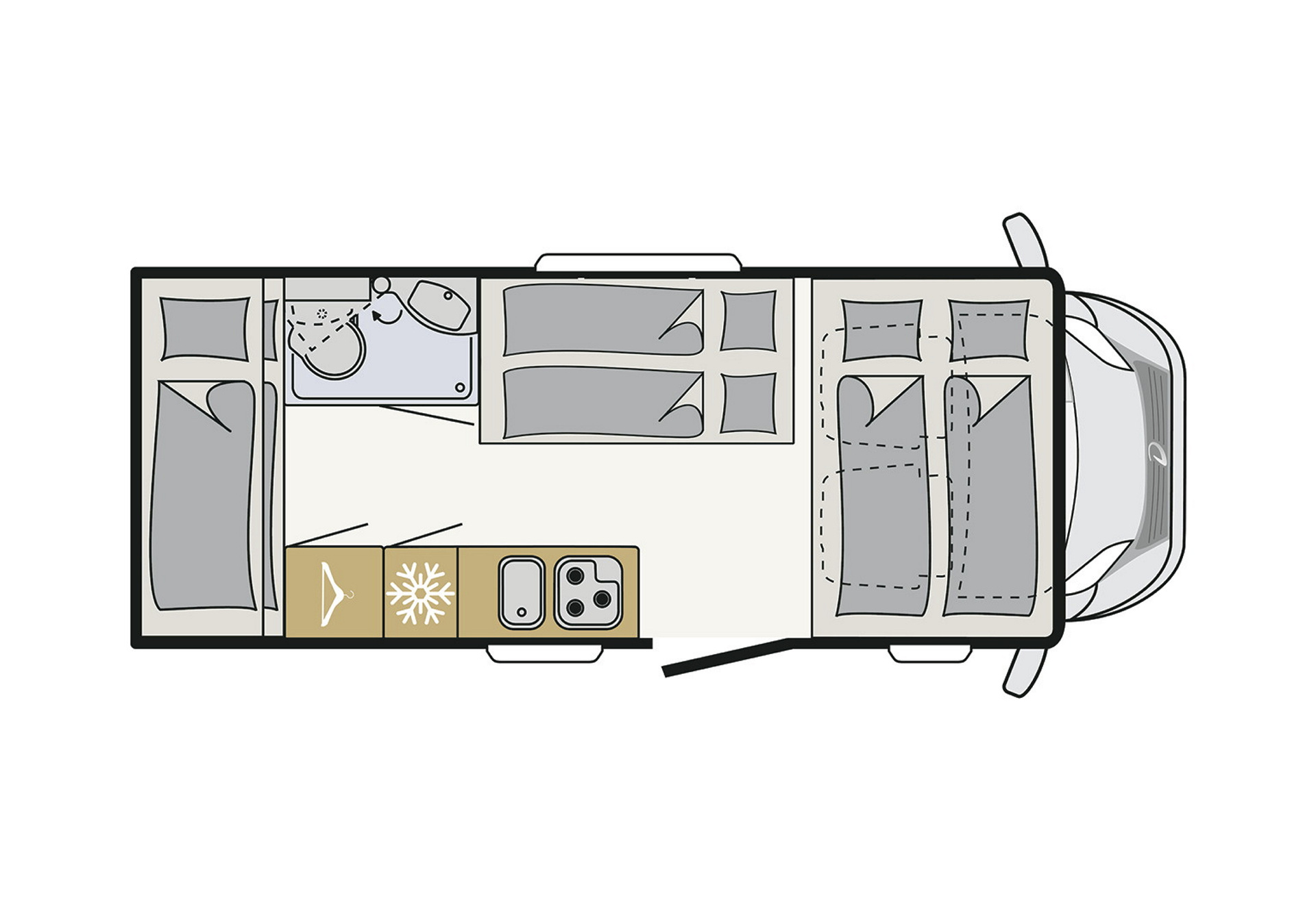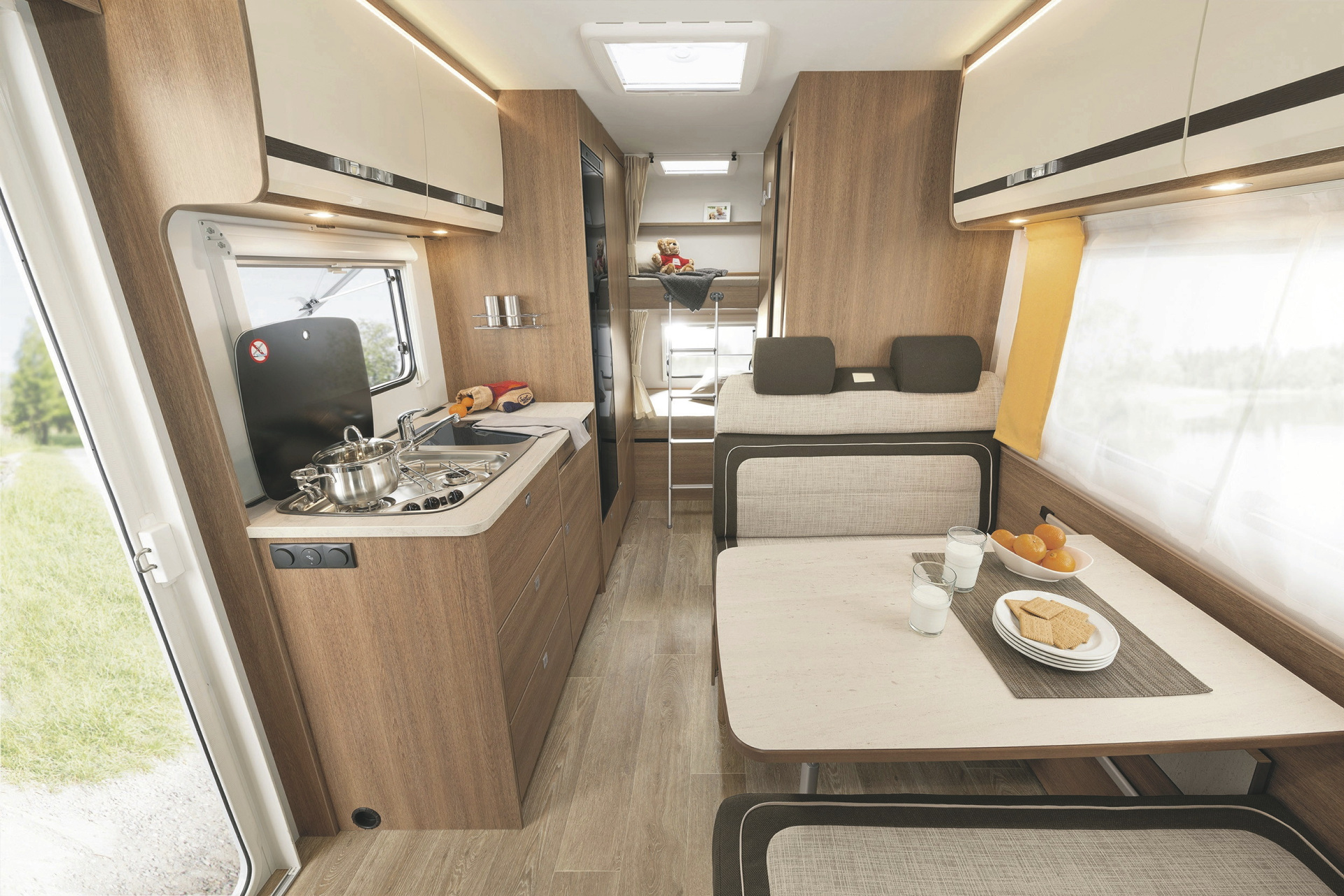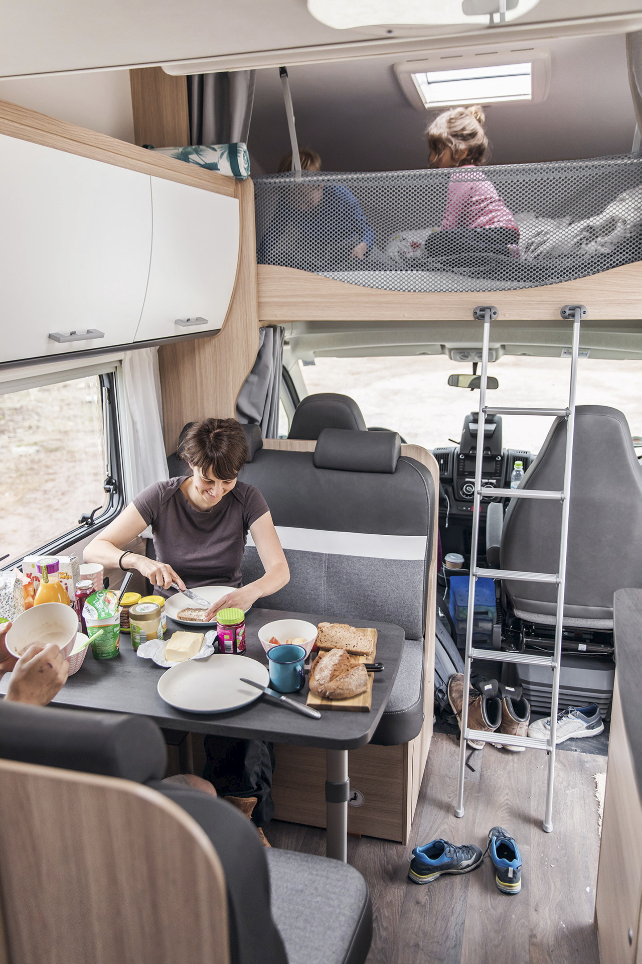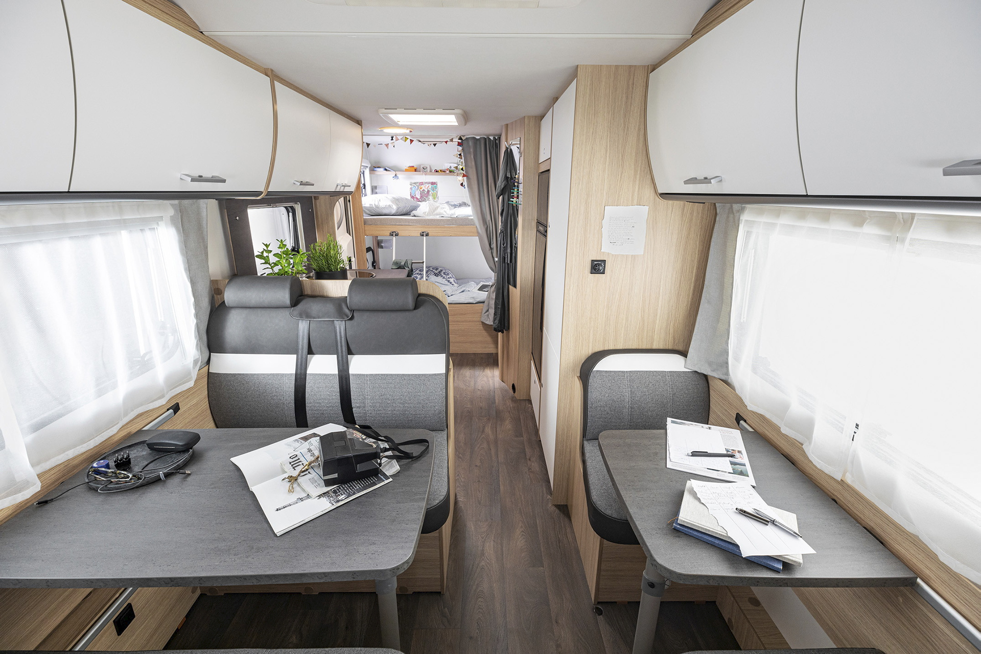 Das komfortable Family Plus Wohnmobil bietet reichlich Platz für die ganze Familie. Besonders beliebt bei Kindern sind die beiden Stockbetten im Heck. Ideal für 2 Erwachsene + 2 Kinder, max. für 4 Erwachsene + 1-2 Kinder.
