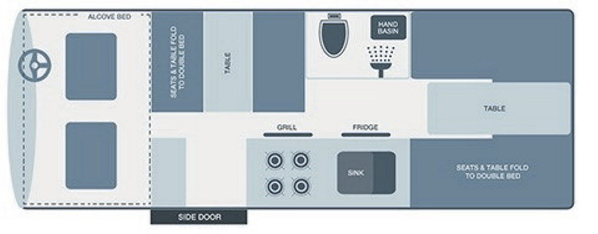 Wir sind verpflichtet darauf hinzuweisen, dass dieser Camper im Allgemeinen für Personen mit eingeschränkter Mobilität nicht geeignet ist. Falls Sie sich unsicher sind, sprechen Sie uns bitte vor einer Buchung an.