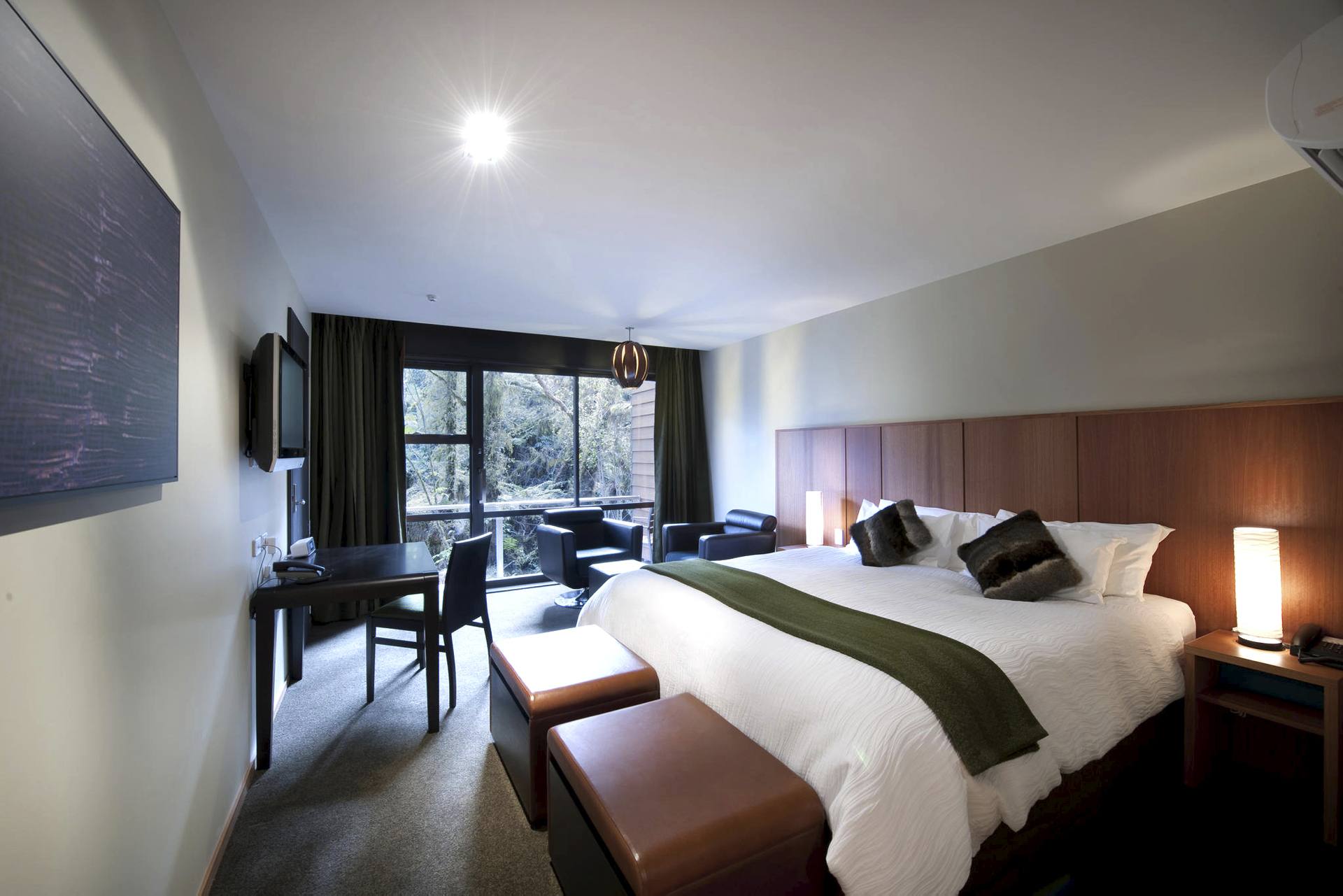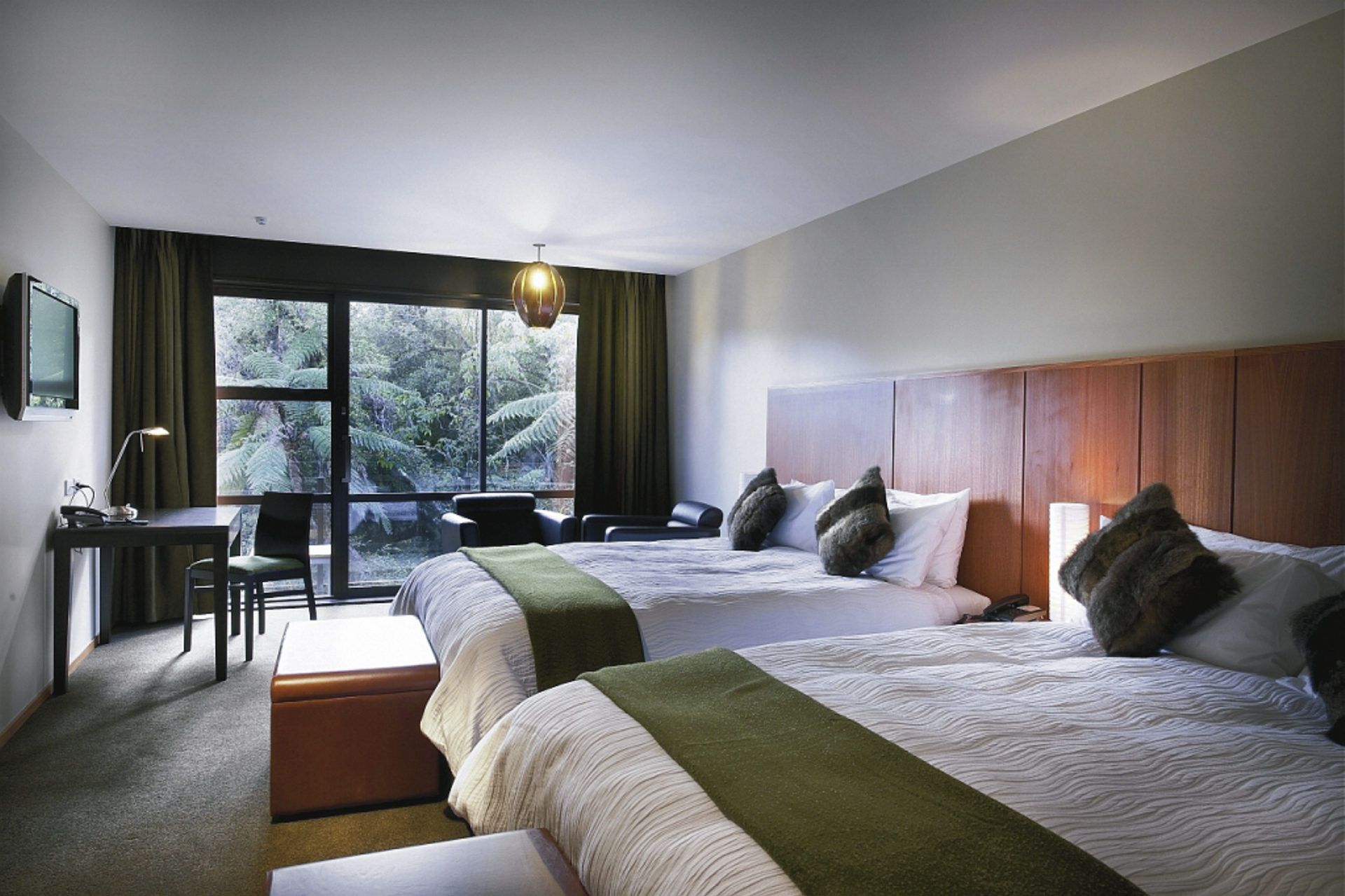 Stellen Sie sich vor, Sie erwachen zum melodischen Ruf der einheimischen Vogelwelt, öffnen Ihre Augen und blicken auf die majestätischen, aus dem üppigen Regenwald emporragenden, Berge, alles aus dem Komfort Ihres luxuriös ausgestatteten Zimmers. 99 Gästezimmer mit Heizung, DU/WC, Balkon, Zimmersafe, TV, DVD, Bügeleisen, Internet, Minibar, Tee-/Kaffeezubereiter erwarten Sie.