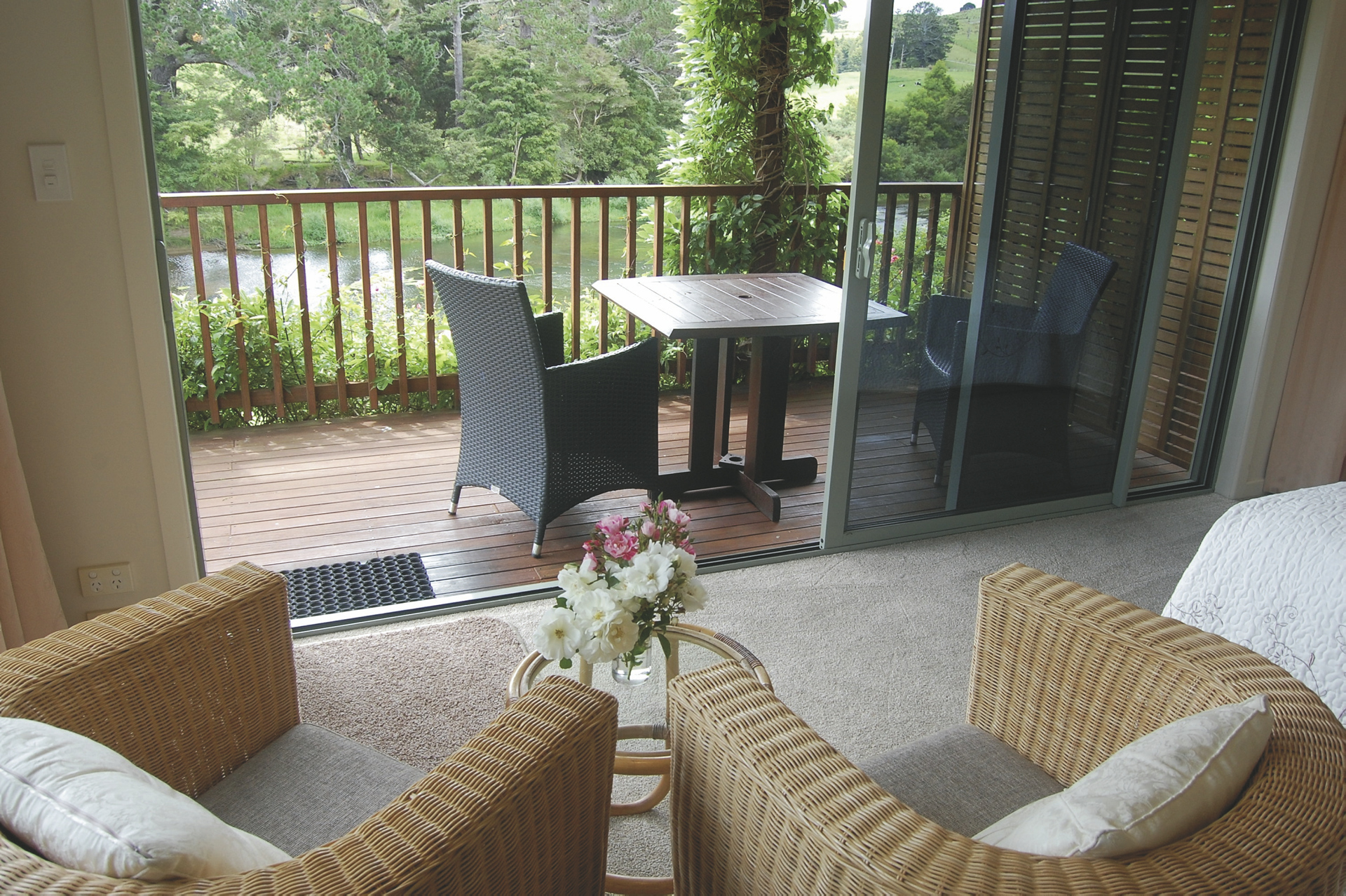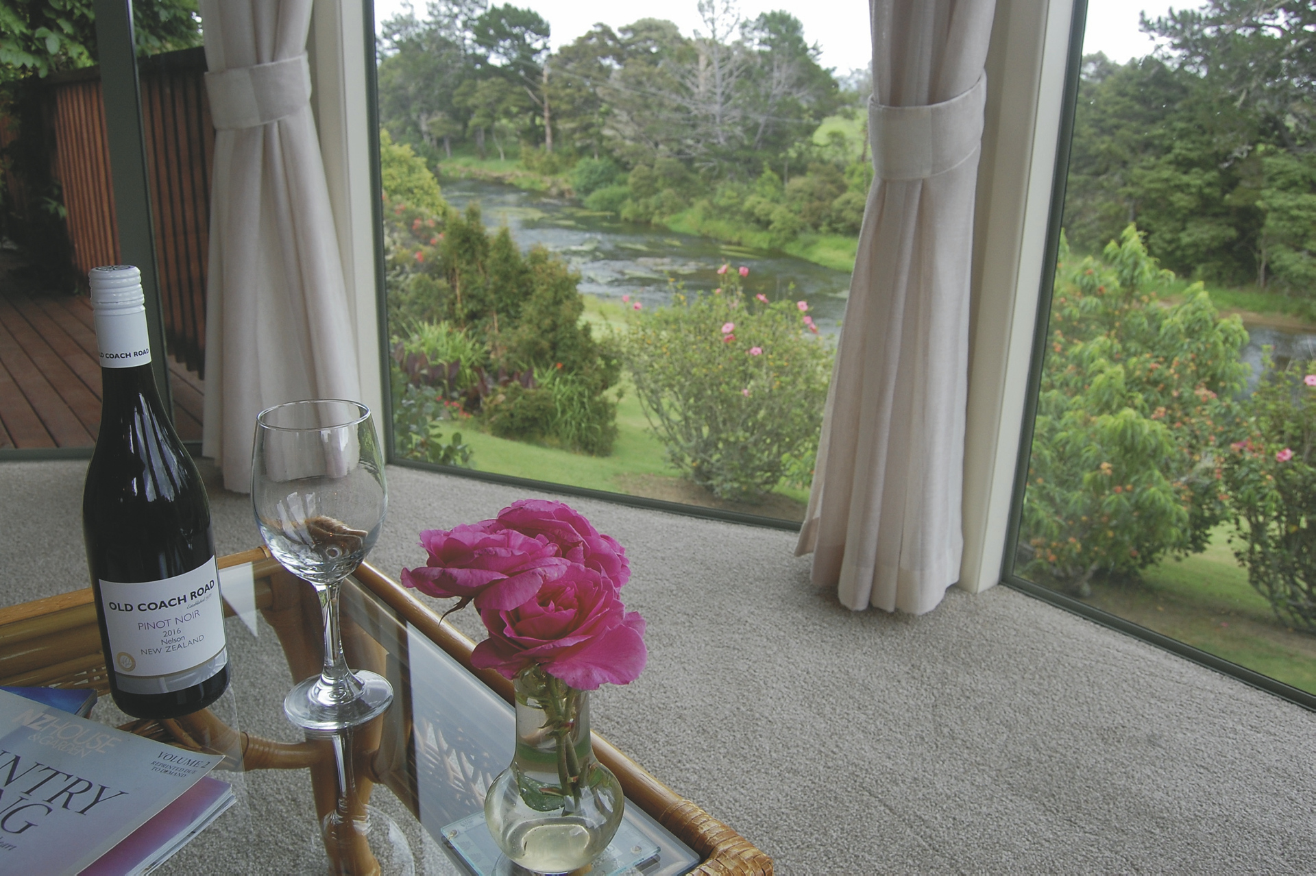 Das romantische Bed & Breakfast-Haus befindet sich in einer der schönsten Landschaften der Nordinsel Neuseelands. Die Lodge selbst liegt am Ufer des Waitangi-Flusses, dessen sanft dahinfließendes Wasser und die gegenüberliegenden grünen Felder ein Gefühl der Ruhe und Entspannung vermitteln.