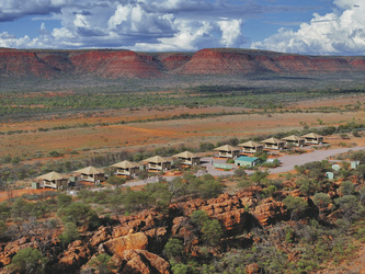 Die uralte, raue Landschaft des Watarrka National Parks, in dem sich der mächtige Kings Canyon...