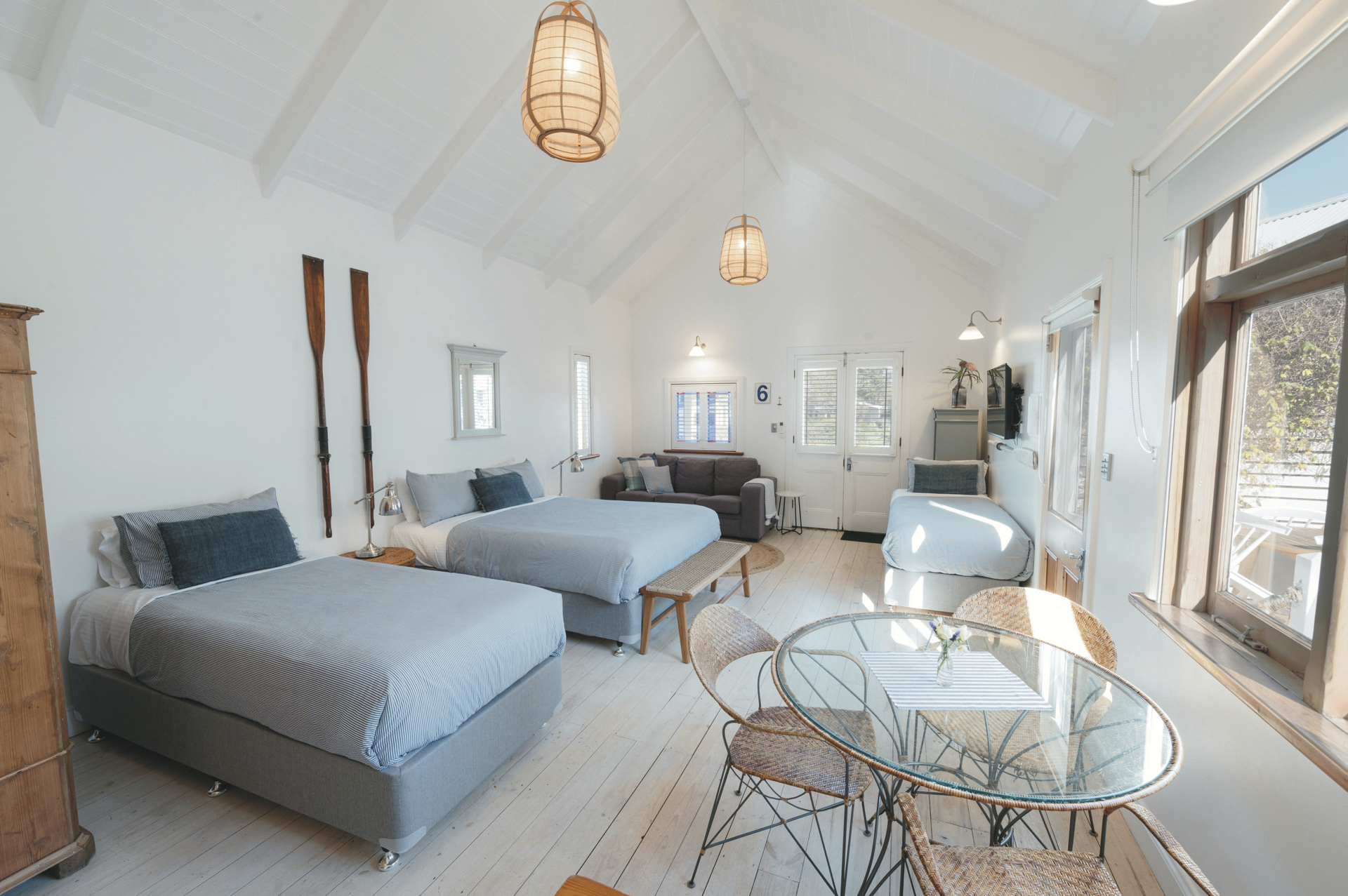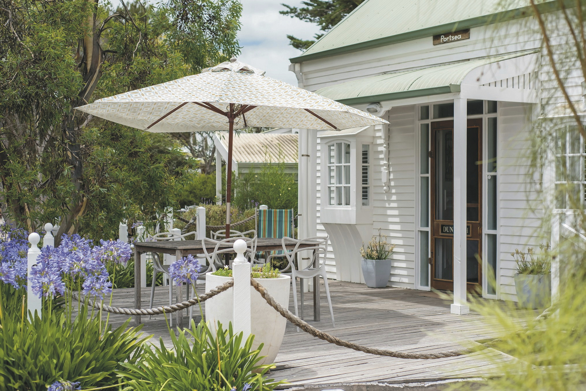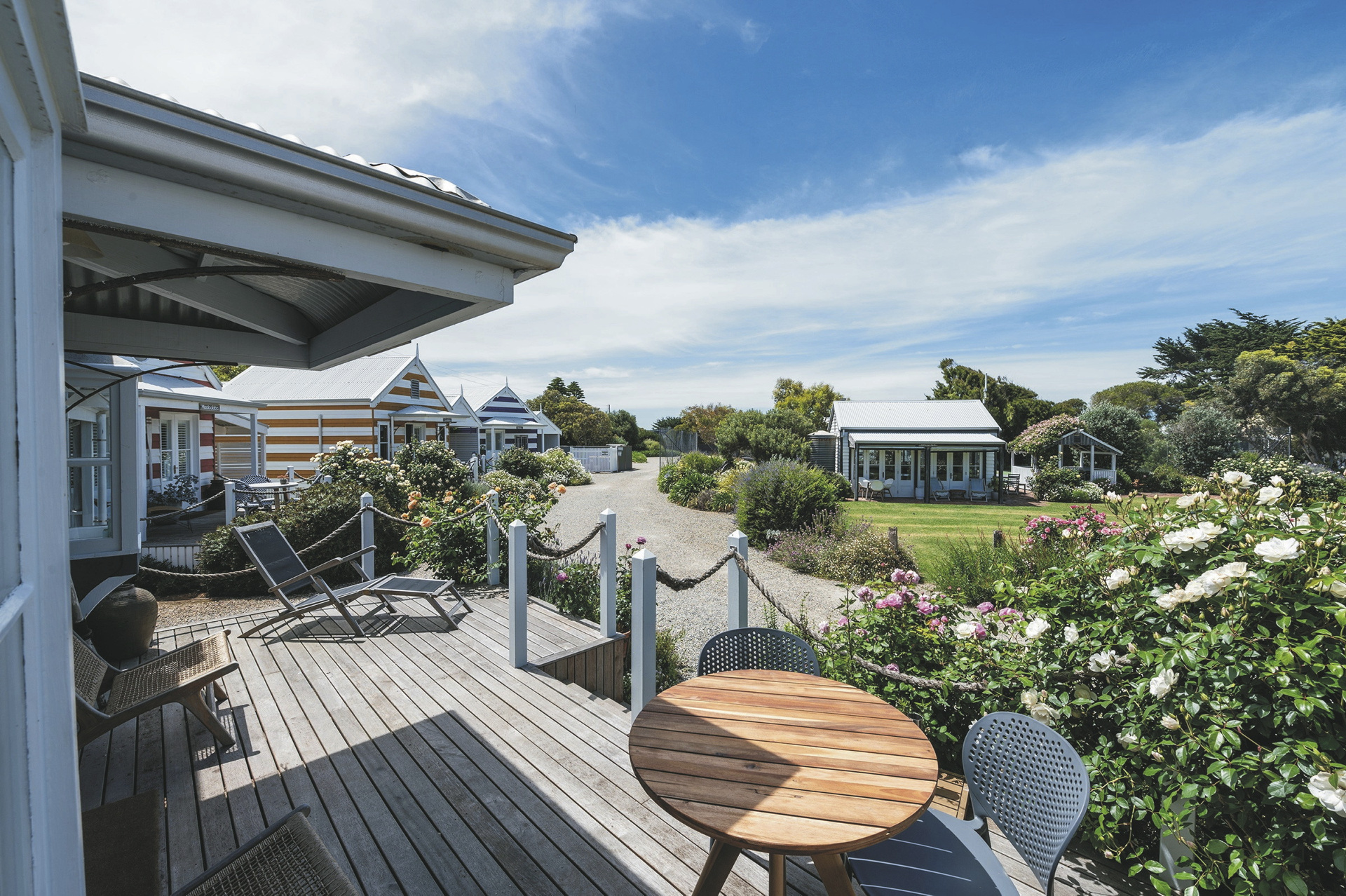 Die Anlage besteht aus individuell gestalteten Bungalows, die sich um einen zentralen, begrünten Bereich gruppieren. Historische Elemente wurden mit modernen Ausstattungen kombiniert und verleihen der Anlage einen eigenständigen Charakter. Kulinarisch ergänzt das hauseigene Restaurant Blues das Angebot mit moderner australischer Küche und regionalen Produkten (geöffnet Mittwochs bis Samstags, Tischreservierung erforderlich). Zudem steht allen Gästen die Village Hall mit Küche und BBQ-Möglichkeiten zur Verfügung. WLAN ist kostenfrei.