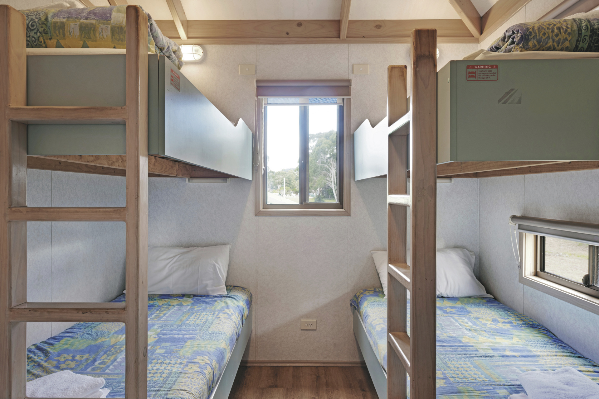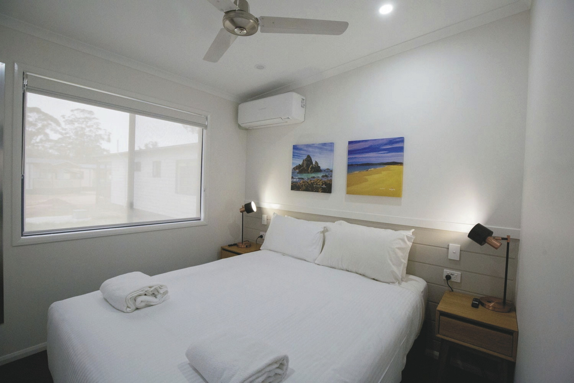 Discovery Parks Eden bietet verschiedene Unterkünfte, darunter Superior 2 Bedroom Cabins und Deluxe 2 Bedroom Cabins mit ausreichend Platz für einen komfortablen Aufenthalt. Beide Kategorien verfügen über je ein Elternschlafzimmer mit Doppelbett und ein Kinderschlafzimmer mit Stockbetten sowie einen Wohn- und Essbereich. Zur Ausstattung zählen ein Badezimmer mit Dusche/WC sowie eine gut ausgestattete Küche. Die Deluxe 2 Bedroom Cabin bietet zusätzlich eine Spülmaschine und eine Klimaanlage mit Heizfunktion.