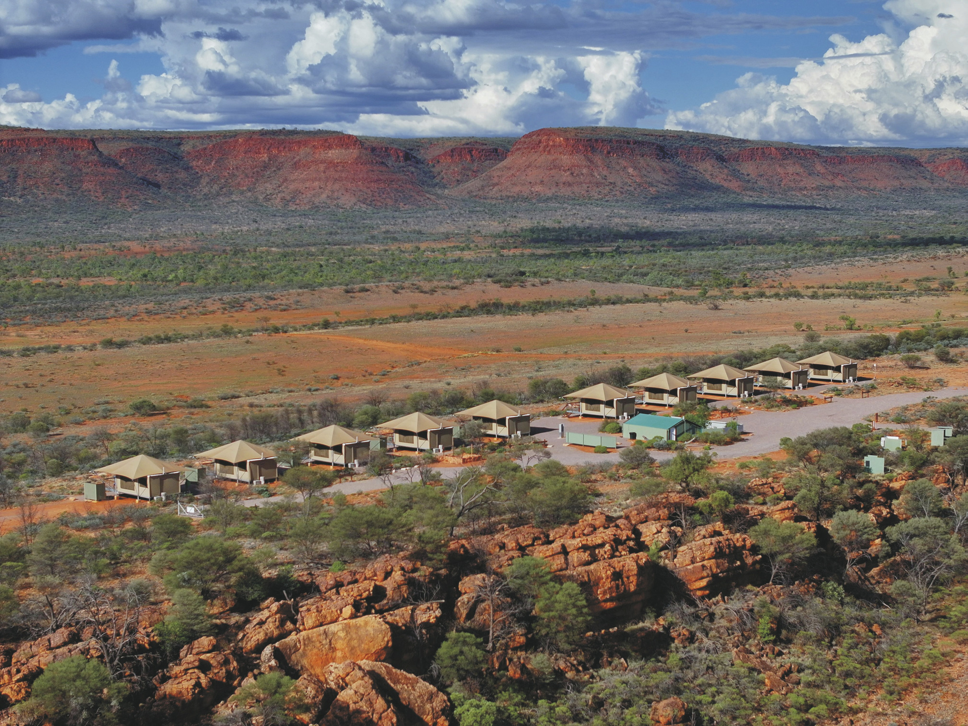Die Anlage bietet verschiedene Unterkunftsoptionen, darunter die höherwertigen Kategorien Drovers Dream und Dreamtime Escarpment. Drovers Dream umfasst 10 Bungalow-Zelte in ruhiger Lage mit Blick auf die umliegende Landschaft. Zur Ausstattung zählen u.a. eigenes Bad mit Dusche, Queensize-Bett, Klimaanlage sowie eine private Terrasse mit BBQ. Weiterhin gibt es eine gemeinsame Feuerstelle.